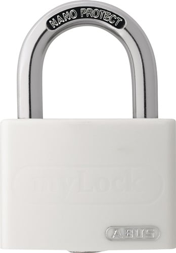- 1x ABUS Zylindervorhangschloss T65AL/40 weiß gl.Schlosskörper-B.43mm Alu.gl.