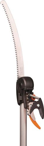 ohne Schneidgiraffe (Stiel) · effektives Arbeiten durch einstellbaren Sägewinkel für alle Arbeitshöhen · Schraubverschluss · kombinierbar mit Schneidgiraffe und/oder Verlängerung bzw. Teleskop-Schneidgiraffe · besonders lange Lebensdauer durch gehärteten Sägestahl (HRc 42) · Sägehalterung aus beständigem, glasfaserverstärktem Polyamid · geeignet für Schneidgiraffen UPX 82 und UPX 86 (4000 819 501 + 4000 819 512)