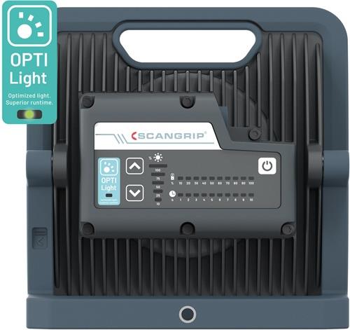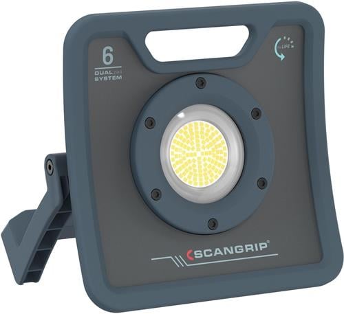 wiederaufladbare LED-Arbeitsleuchte mit 4000 Lumen · tragbar · kann mit oder ohne 5 m Gummikabel verwendet werden · wasser- und staubdicht (IP67) · mit einem integriertem Tragegriff und einer flexiblen Halterung für den einfachen Transport und zur Montage an einem SCANGRIP TRIPOD Stativ · mit 90 LEDs · einstellbare Lichtleistung · separate Anzeigen für Restlaufzeit und Batteriestand Weitere technische Eigenschaften: · Lichtfarbe: 5700K · prüfpflichtig: ja · Ladezeit: 3,5h · Leuchtdauer: 1,5h · Akku-Typ: Li-ion (Min. 1000 charging cycles) · Aufprallschutz: IK07 · Betriebstemperatur: -10 bis +40Grad Celsius · CRI Haupt: Ra > 80 · Einstellbare Lichtleistung Main: 6 level · Kabel: 196.9 in / 2x0,75 mm2 H05RN-F · Lichtquelle Haupt: High efficiency multi-LED design with 120 LEDs · OPTILight-Einstellung: 200 lux@2 m (EN-12464-2) · Strahlwinkel Haupt: 110Grad · Stromquelle: Cable - Rechargeable