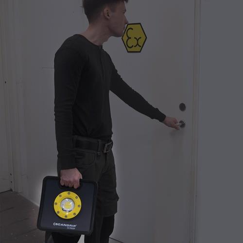 extrem leistungsstark · EX-geschützt · speziell für Arbeitsumgebungen mit explosionsfähigen Atmosphären, wie z.B. chemische Industrie, Tankwagen, Raffinerien u.v.a. · extrem helle und gleichmäßige Ausleuchtung · zwei Lichtstufen: 50 % und 100 % · Gehäuse aus Aluminiumguss, schlagfest · integrierter Tragegriff · flexibler Stellfuß dient zum Aufhängen der Leuchte oder zur Einstellung des gewünschten Beleuchtungswinkels · für den Einsatz im Freien zugelassen Weitere technische Eigenschaften: · Abstrahlwinkel: 110° · prüfpflichtig: ja · Ladezeit: 3h · Leuchtdauer: 4h