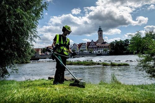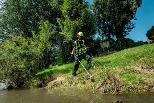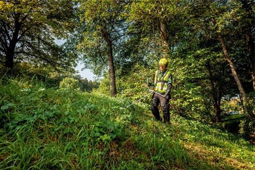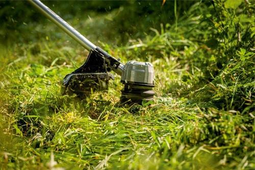 verstellbarer Zweihandgriff · Einsatz mit Doppelfadenspule oder Messer · nachstellen des Fadens durch kurzes Auftippen des Spulenkopfs während des Arbeitens · Quick Fadenwechsel · bürstenloser Motor · stufenlose Geschwindigkeitssteuerung · Metallgetriebegehäuse Weitere technische Eigenschaften: · Gewicht: 4,7 (inkl. Akku)kg · prüfpflichtig: ja