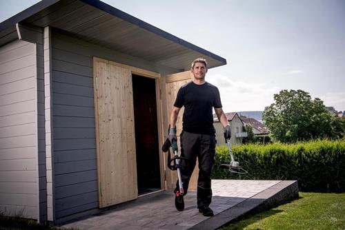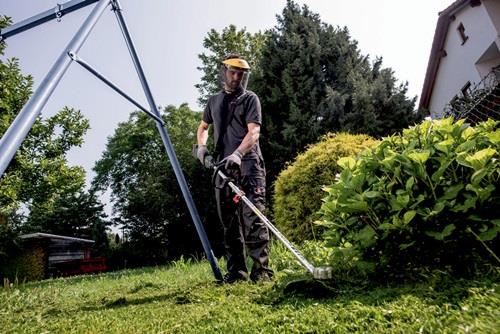 leicht und kompakt für Mäh-, Trimm- und Ausputzarbeiten · zweiteiliger Schaft mit Schnellkupplung · Quick-Fadenwechsel · Nachstellen durch kurzes Auftippen des Spulenkopfs während des Arbeitens · bürstenloser Motor · stufenlose Geschwindigkeitssteuerung · klappbarer Schutzbügel als Abstandshalte · Metall-Motorgehäuse Weitere technische Eigenschaften: · Leerlaufdrehzahl: 0-6500min-¹