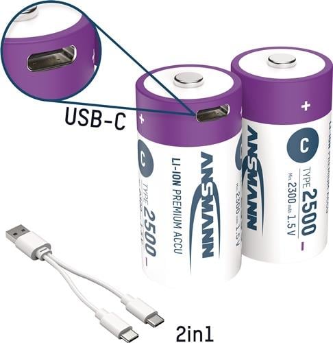 hochwertiger Lithium-Ionen Akku mit integriertem USB- C Ladeport · Temperaturbereich: von -20°C bis +60°C einsetzbar Ersatz für Einwegbatterien