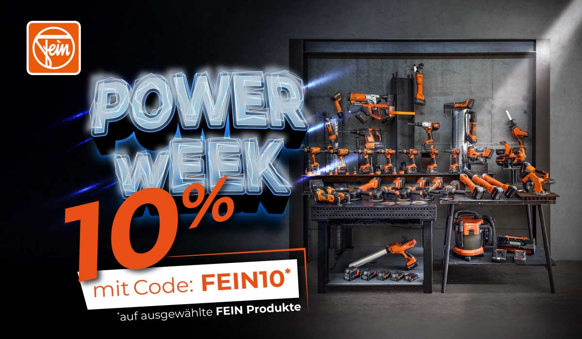 Eine Woche volle Power für Profis: Mit der FEIN PowerWeek sicherst du dir 10 % Extra-Rabatt auf ausgewählte FEIN Maschinen und Zubehör. Perfekt, um deine Werkstatt aufzurüsten oder bewährte FEIN Qualität zum Vorteilspreis zu bekommen.