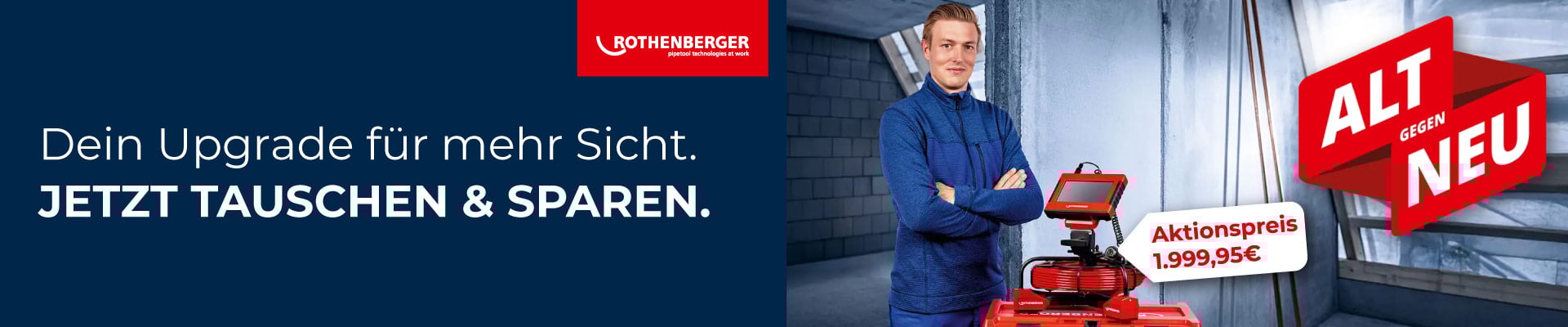 Beim Eintausch erhältst du die ROCAM MINI HD zum attraktiven Austauschpreis von 1.999,95 €. Ideal für Profis, die auf eine kompakte, hochauflösende Kamera für präzise Rohr- und Hohlrauminspektionen setzen.