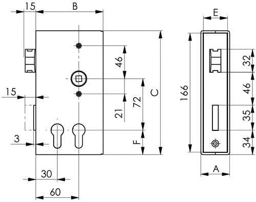 "AMF Schlosskasten 140D-PZ DIN L/R Maß A40xB94,5xC173mm Dornm.30/60mm - 14407"