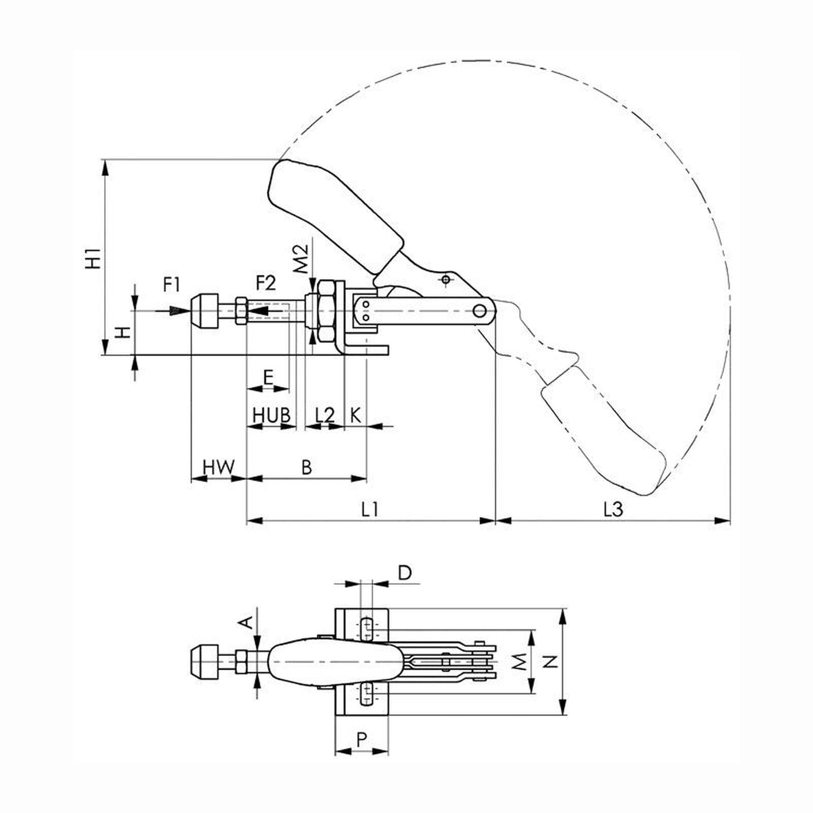- der Spanner kann ohne Winkelfuß an Blechwänden befestigt werden oder in Vorrichtungskörpern mit stirnseitigem Gewinde eingeschraubt werden
