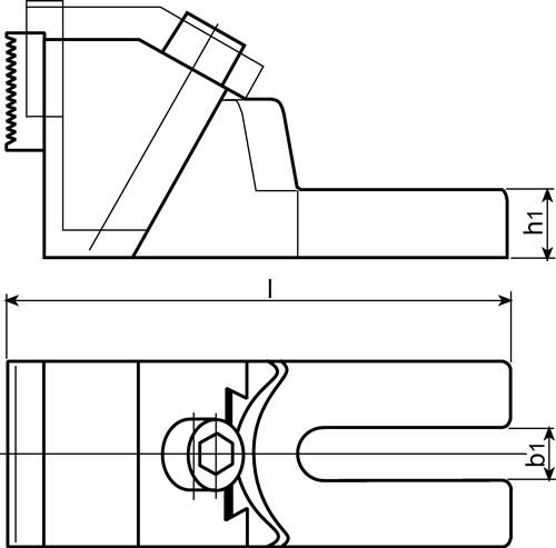 Spannbacken umdrehbar hohe Bauart mit exakter Prismenführung Grundkörper Temperguss Spannbacken Einsatzstahl, einsatzgehärtet mit glatter Seite für bearbeitete Werkstücke und geriffelter Seite für rohe Spannflächen Anwendung: Durch die große Spannfläche eignen sich diese stabilen Spannbacken zum seitlichen Spannen hoher Werkstücke. Zur Befestigung des Stabilspannbackens auf dem Maschinentisch wird die Verwendung von zwei Spannschrauben empfohlen. Als Befestigungsschrauben sind je nach Nutenbreite Schrauben für T-Nuten DIN 787 - zwei Stück je Spannbacken - separat zu bestellen.
