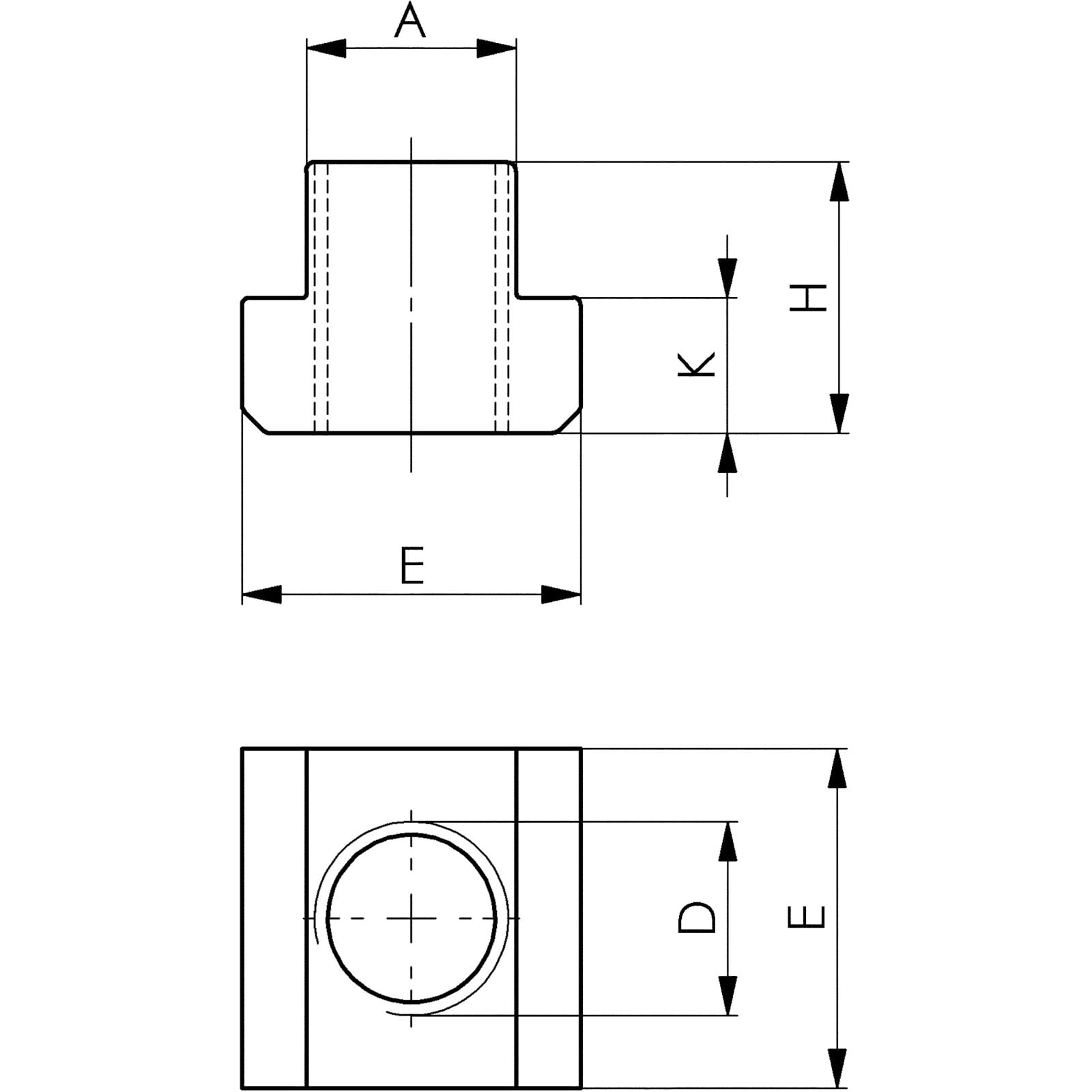 - volle Belastbarkeit der Mutter für T-Nute kann nur erreicht werden, wenn die Verschraubung über die gesamte Gewindelänge vorgenommen wird