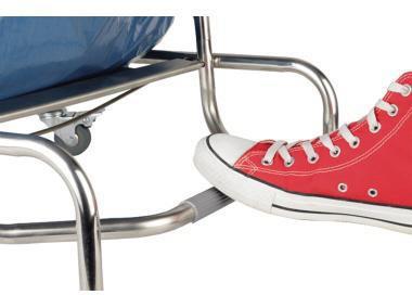 Müllbeutelfixierung durch Gummilippe (55 cm breit). Abstand zwischen Gummilippe und Bodenblech: 82 cm.