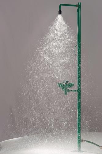 - Körpernotdusche kombiniert mit Augendusche und Auffangbecken