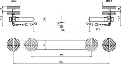 - in der Breite von 582 - 920 verstellbar (Mitte bis Mitte Stützteller)