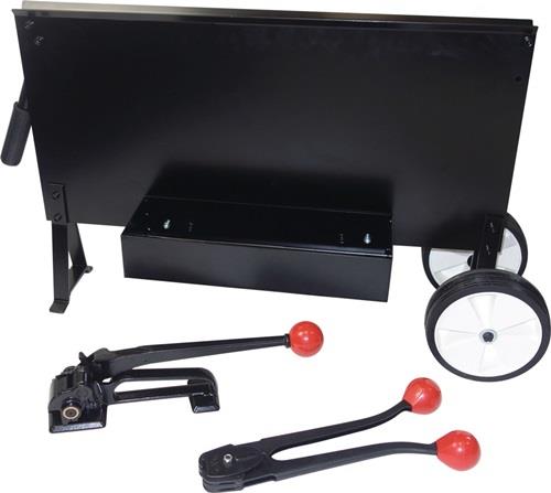 - Stahlbandabrollwagen mit Ablagekasten, Stahlbandspanner