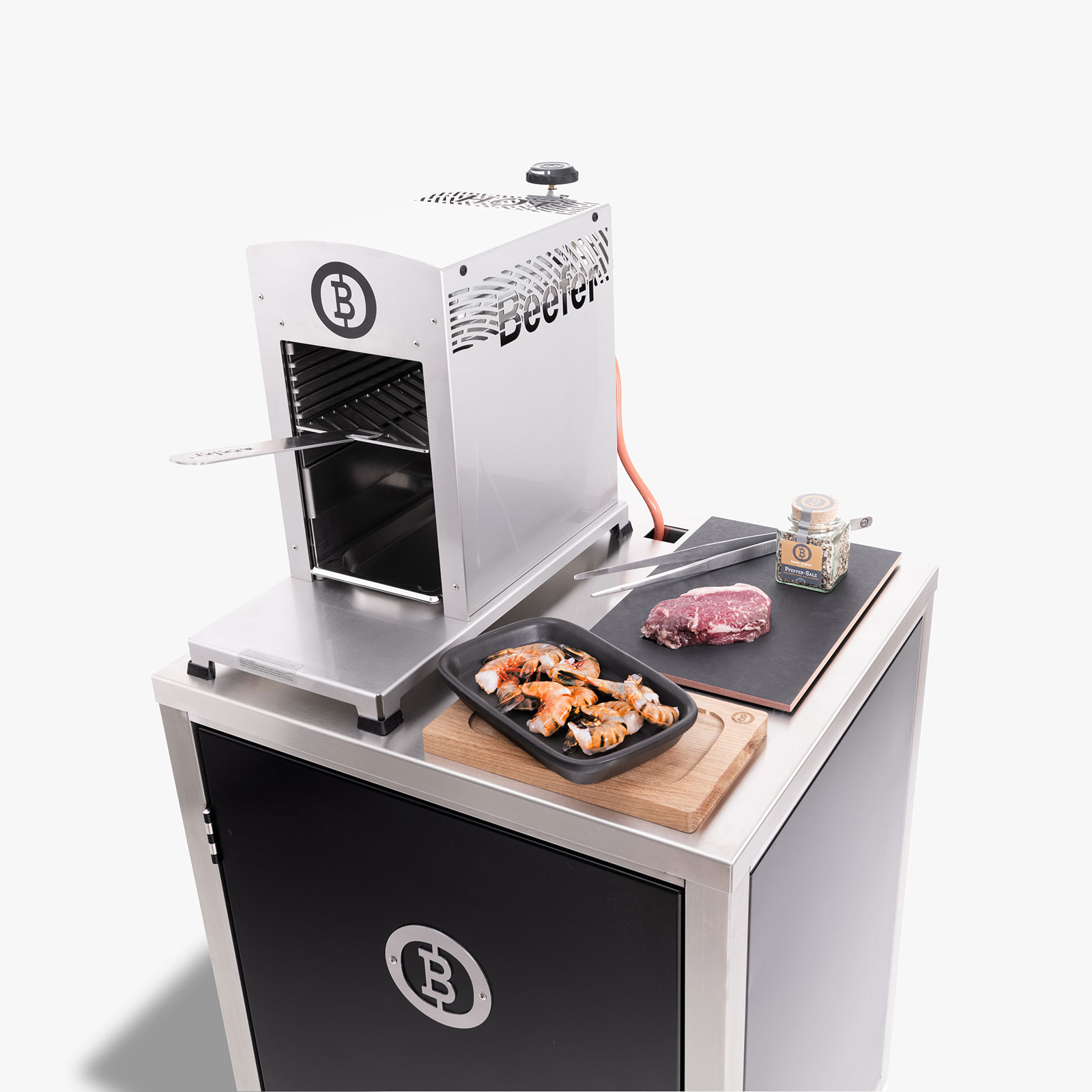 - Der Beefer Rollwagen Small ist ein stabiler Grillwagen aus Edelstahl, speziell für die Beefer One und Beefer Twin Pro Grills.