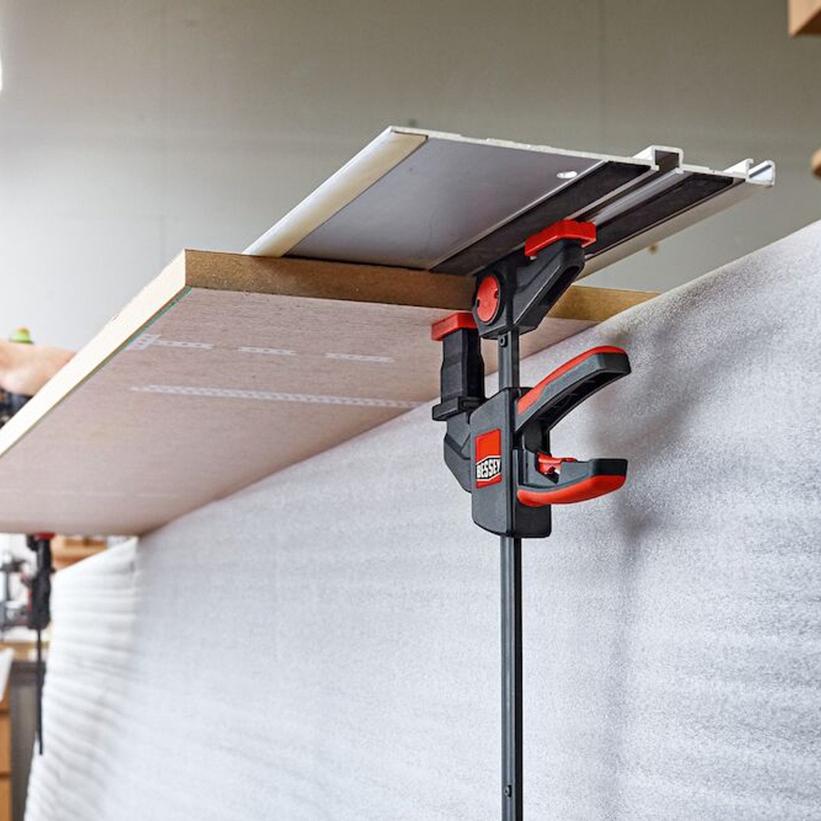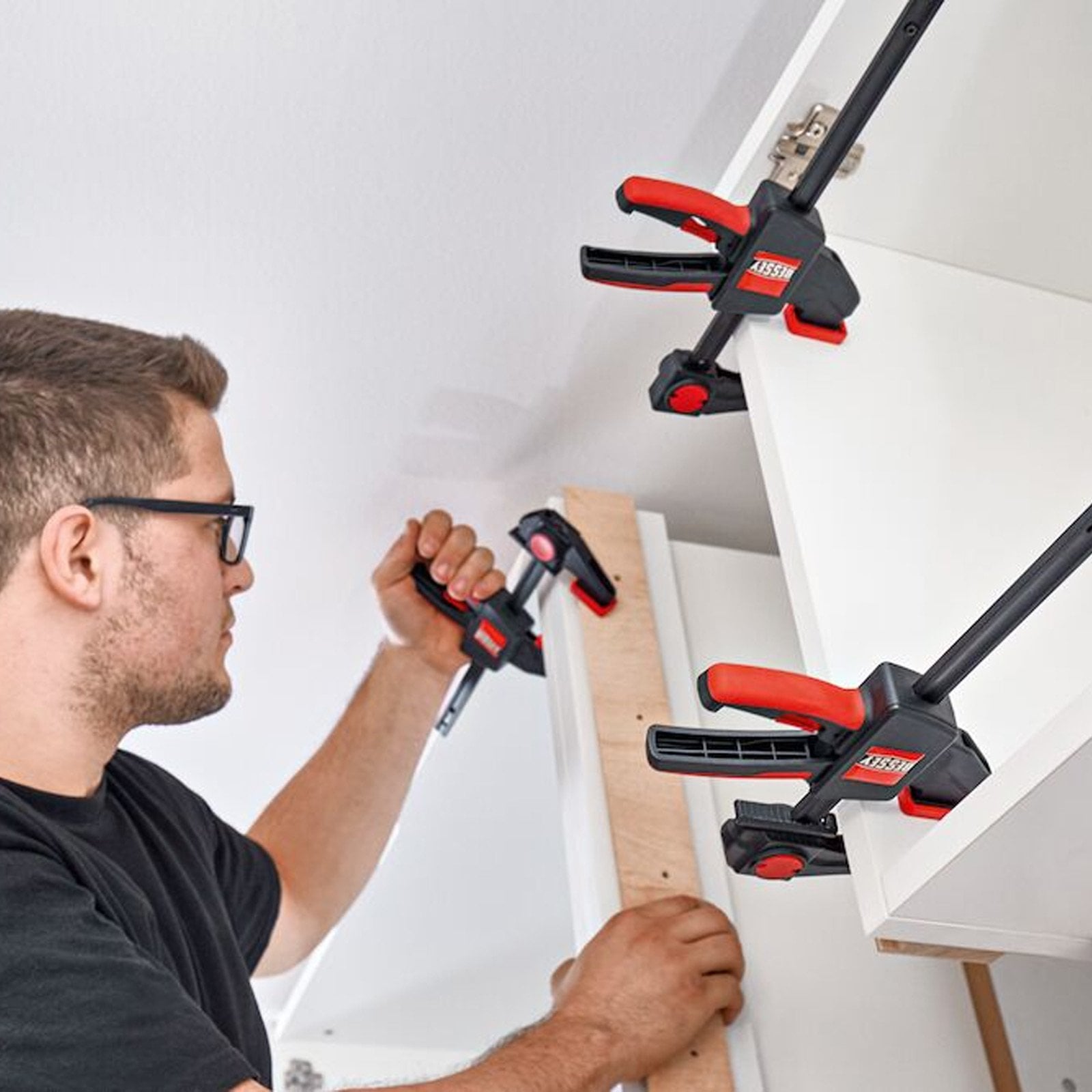 Diese Zwinge bietet eine Vielzahl an Einsatzmöglichkeiten – als Tischzwinge sowie als Einhandzwinge:
