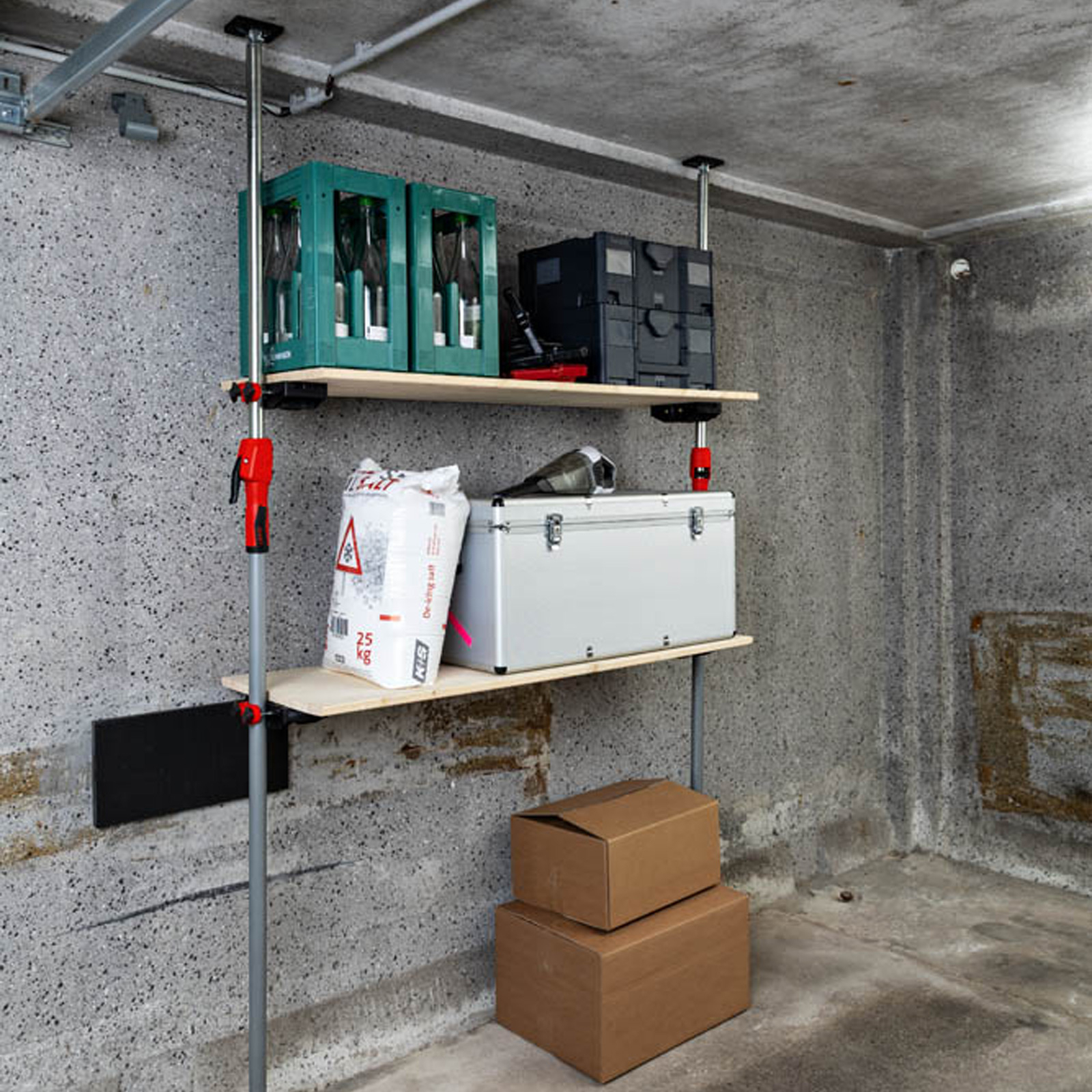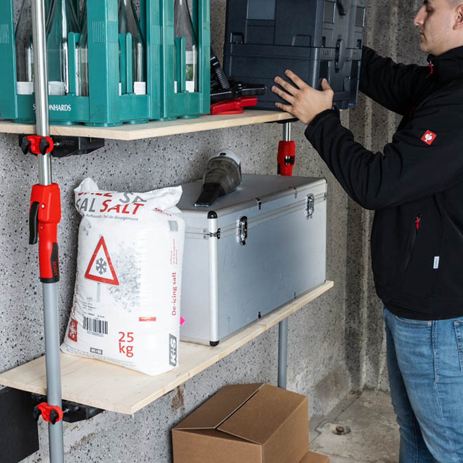 - Halterung zum temporären Aufbau von Stellwänden und Ablageflächen, wie z.B. Tischen, Regalböden