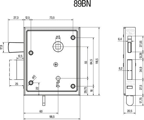 "BEVER Universal-Kastenschloss DIN L/R BB hebende F 60mm - 89BK"