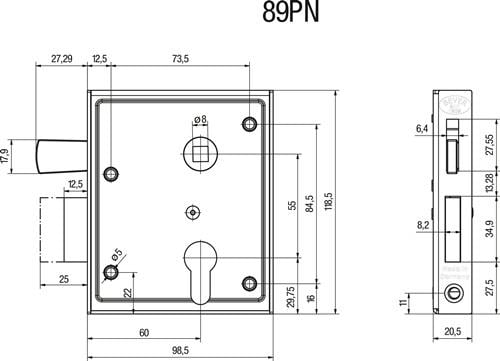 "BEVER Universal-Kastenschloss DIN L/R PZ hebende F 60mm - 89PK"