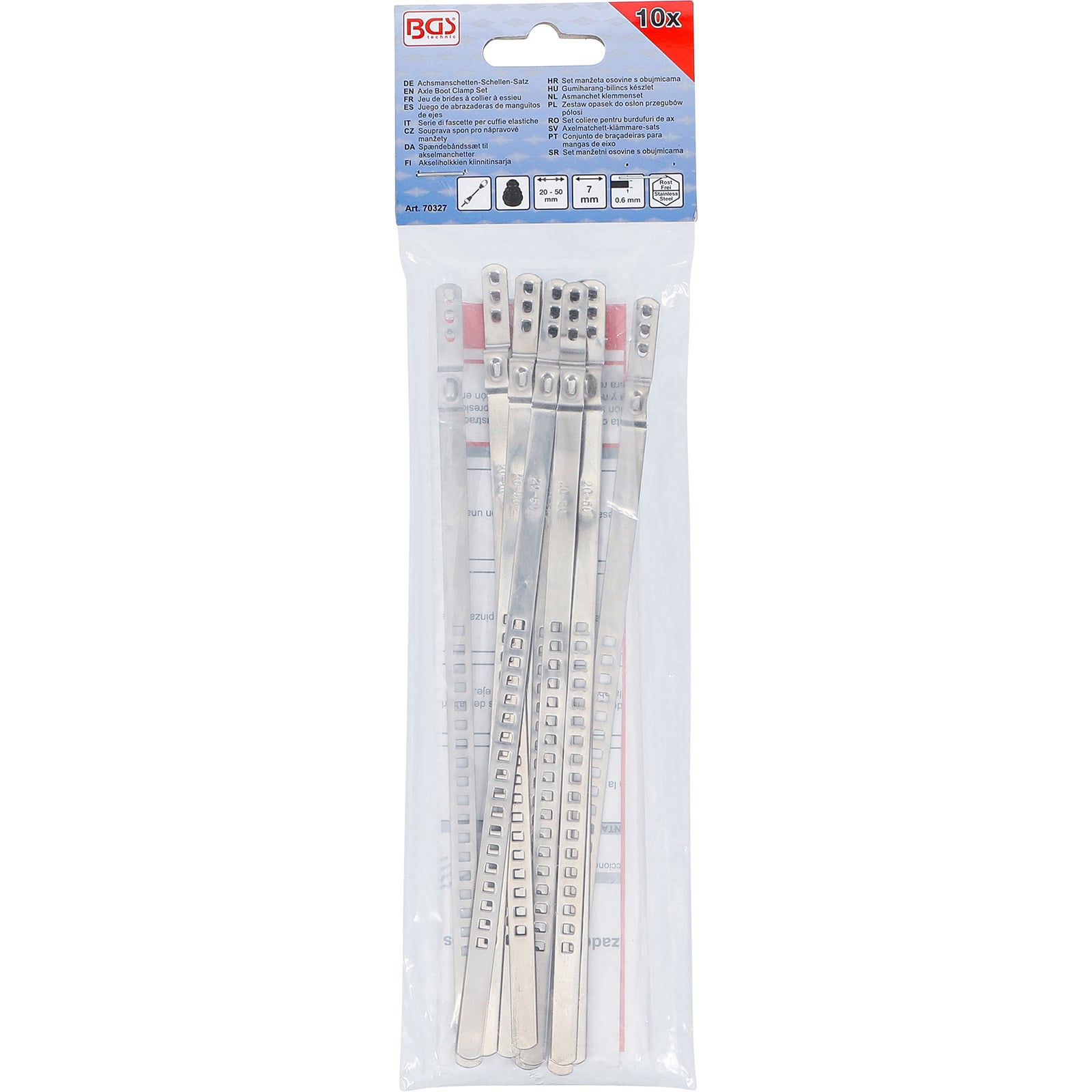 "BGS Achsmanschetten-Schellen-Satz Edelstahl rostfrei 7 mm 20 - 50 mm 10tlg. - 70327"