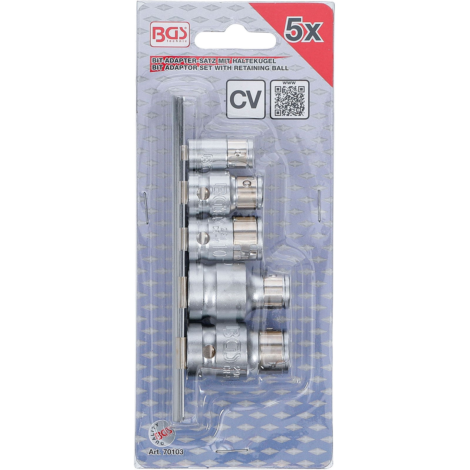 "BGS Bit-Adapter-Satz mit Haltekugel Innenvierkant 6,3 mm (1/4") / 10 mm (3/8") / 12,5 mm (1/2") 5-tlg - 70103"