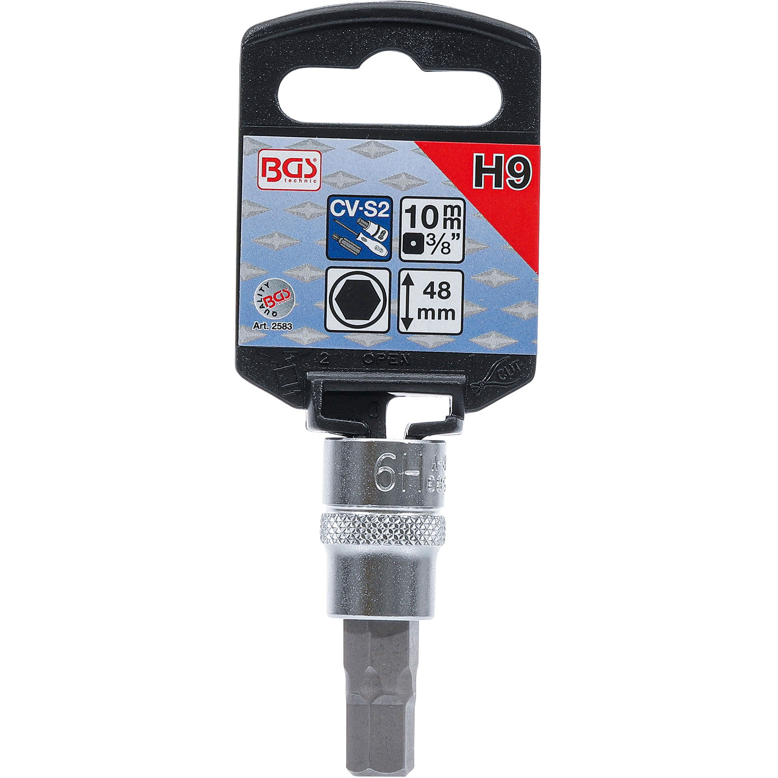 - 1x BGS Bit-Einsatz Antrieb Innenvierkant 10 mm (3/8") Innensechskant 9 mm