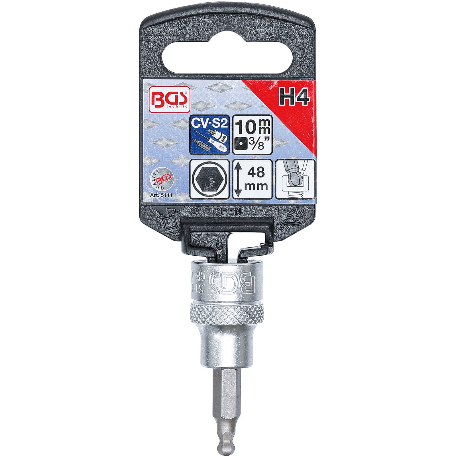 "BGS Bit-Einsatz Antrieb Innenvierkant 10 mm (3/8") Innensechskant mit Kugelkopf 4 mm - 5111"