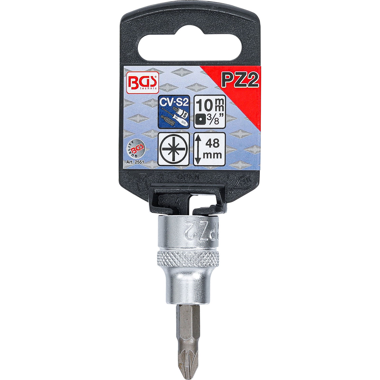 - 1x BGS Bit-Einsatz Antrieb Innenvierkant 10 mm (3/8") Kreuzschlitz PZ2