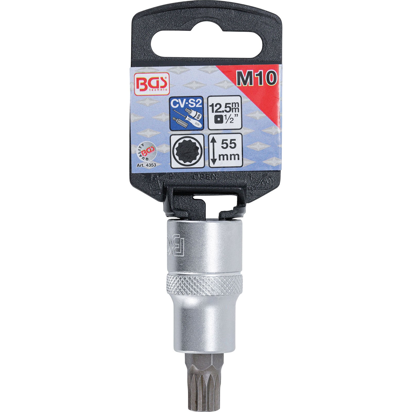 "BGS Bit-Einsatz Antrieb Innenvierkant 12,5 mm (1/2") Innenvielzahn (für XZN) M10 - 4353"