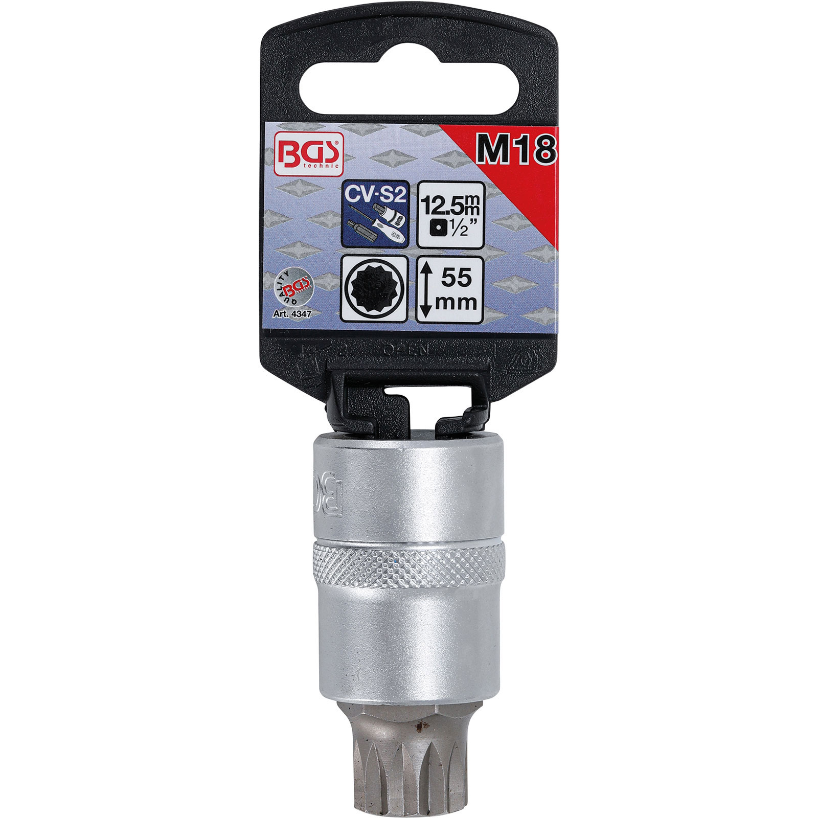 - 1x BGS Bit-Einsatz Antrieb Innenvierkant 12,5 mm (1/2") Innenvielzahn (für XZN) M18