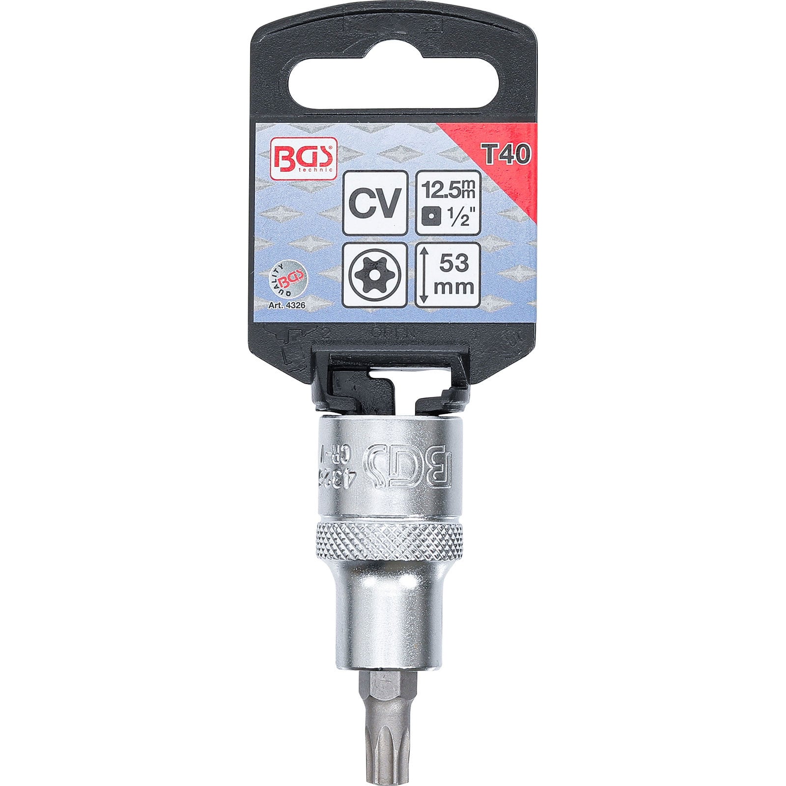 "BGS Bit-Einsatz Antrieb Innenvierkant 12,5 mm (1/2") T-Profil (für Torx) mit Bohrung T40 - 4326"