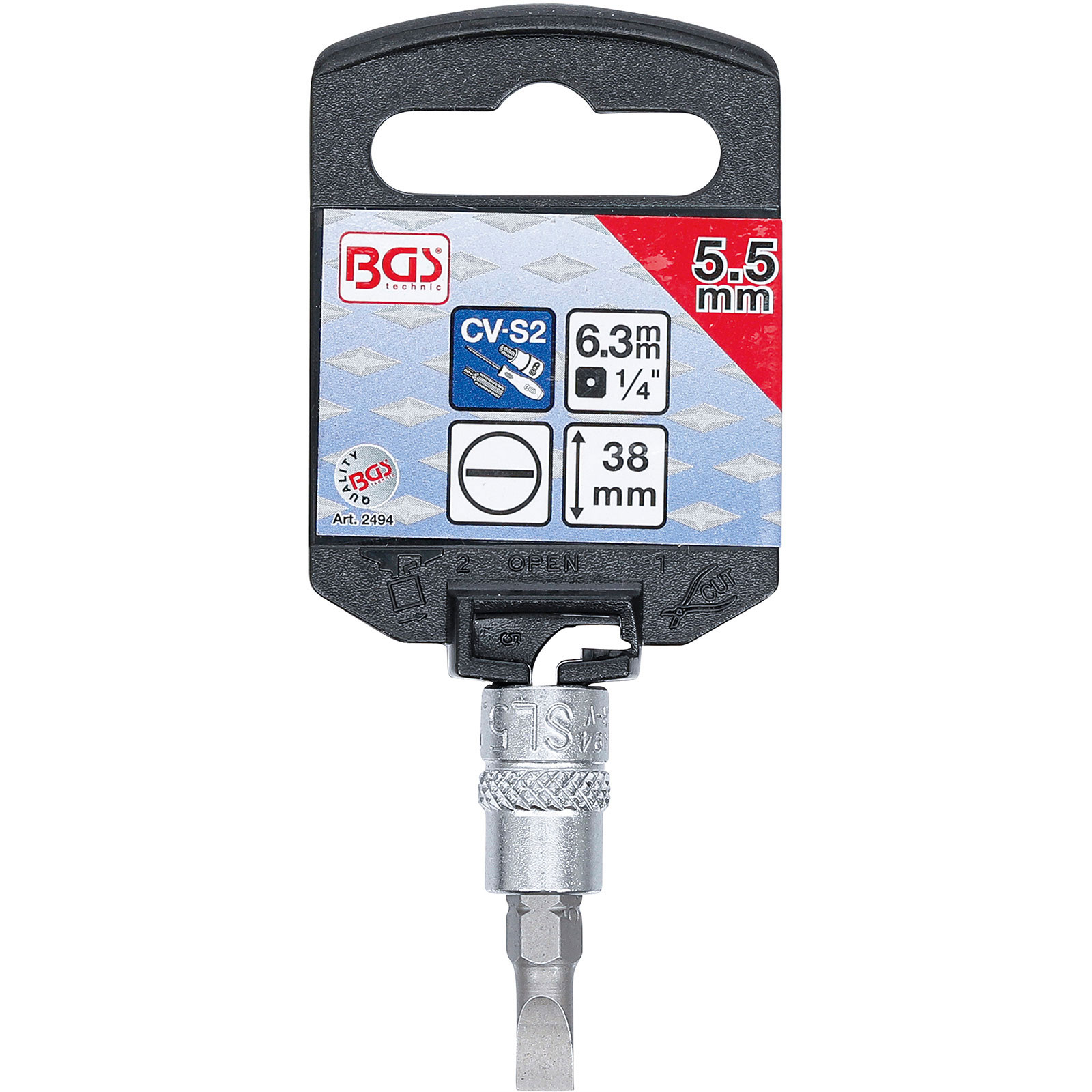 "BGS Bit-Einsatz Antrieb Innenvierkant 6,3 mm (1/4") Schlitz 5,5 mm - 2494"