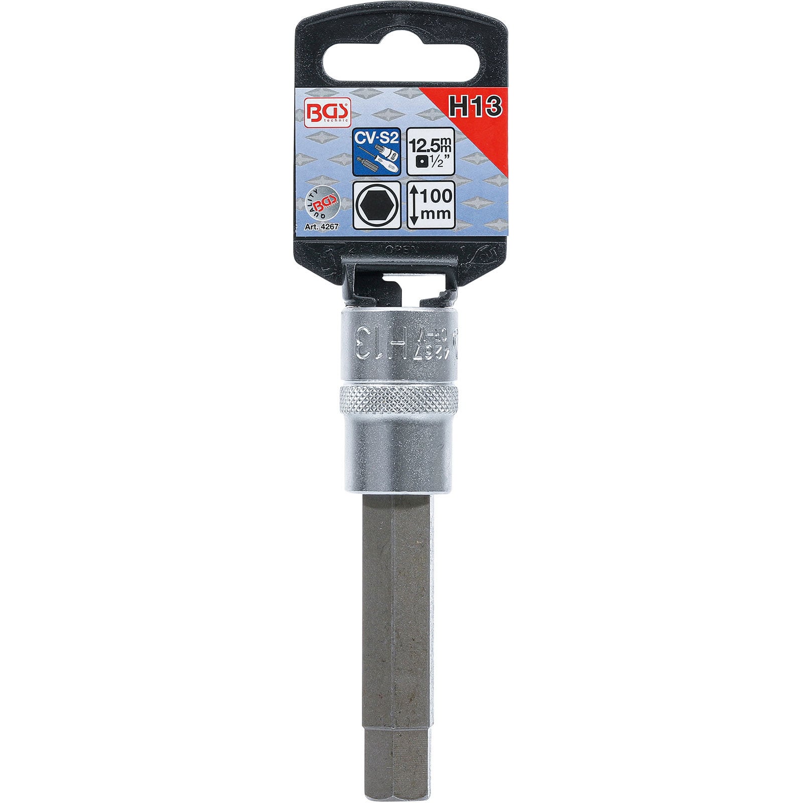 "BGS Bit-Einsatz Länge 100 mm Antrieb Innenvierkant 12,5 mm (1/2") Innensechskant 13 mm - 4267"