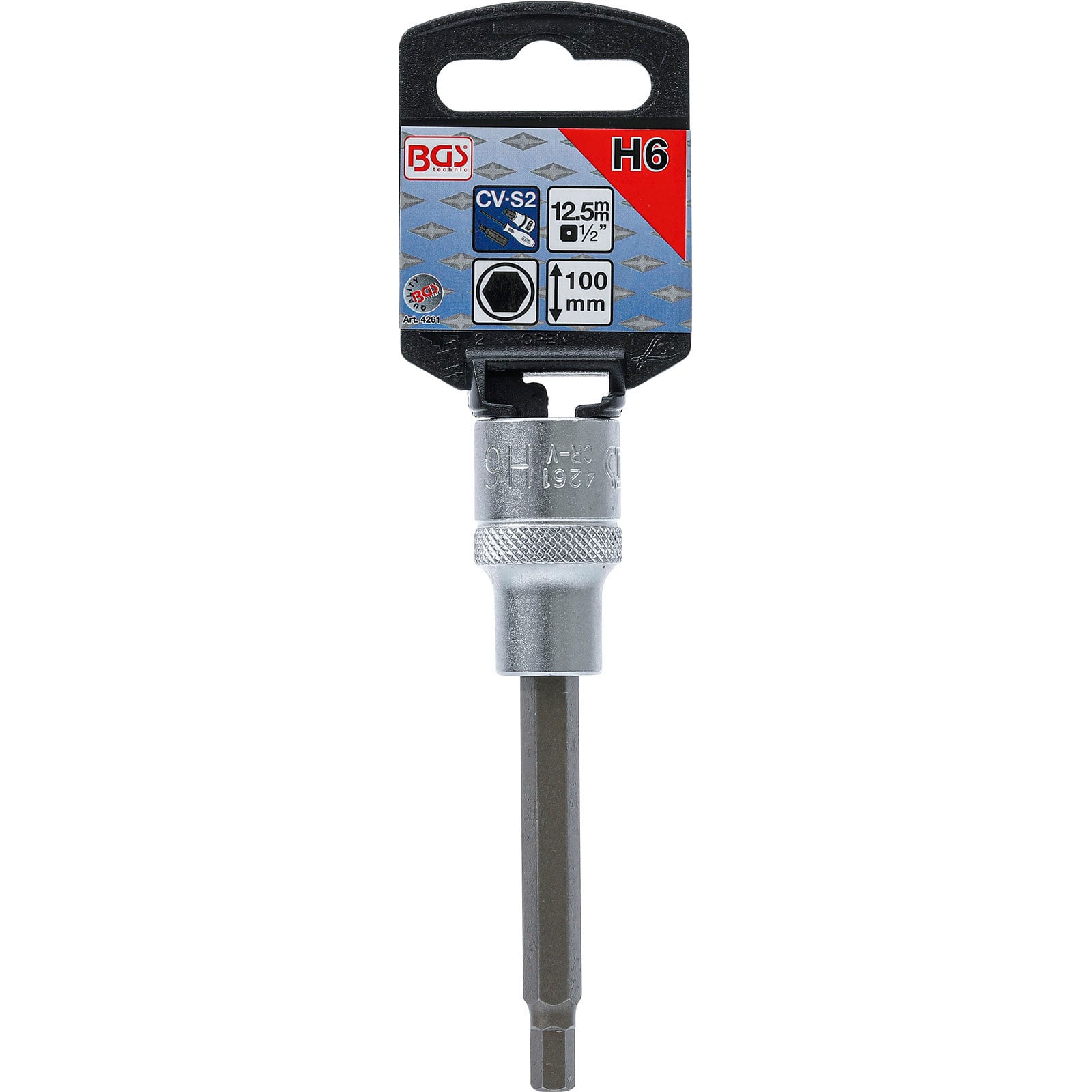"BGS Bit-Einsatz Länge 100 mm Antrieb Innenvierkant 12,5 mm (1/2") Innensechskant 6 mm - 4261"