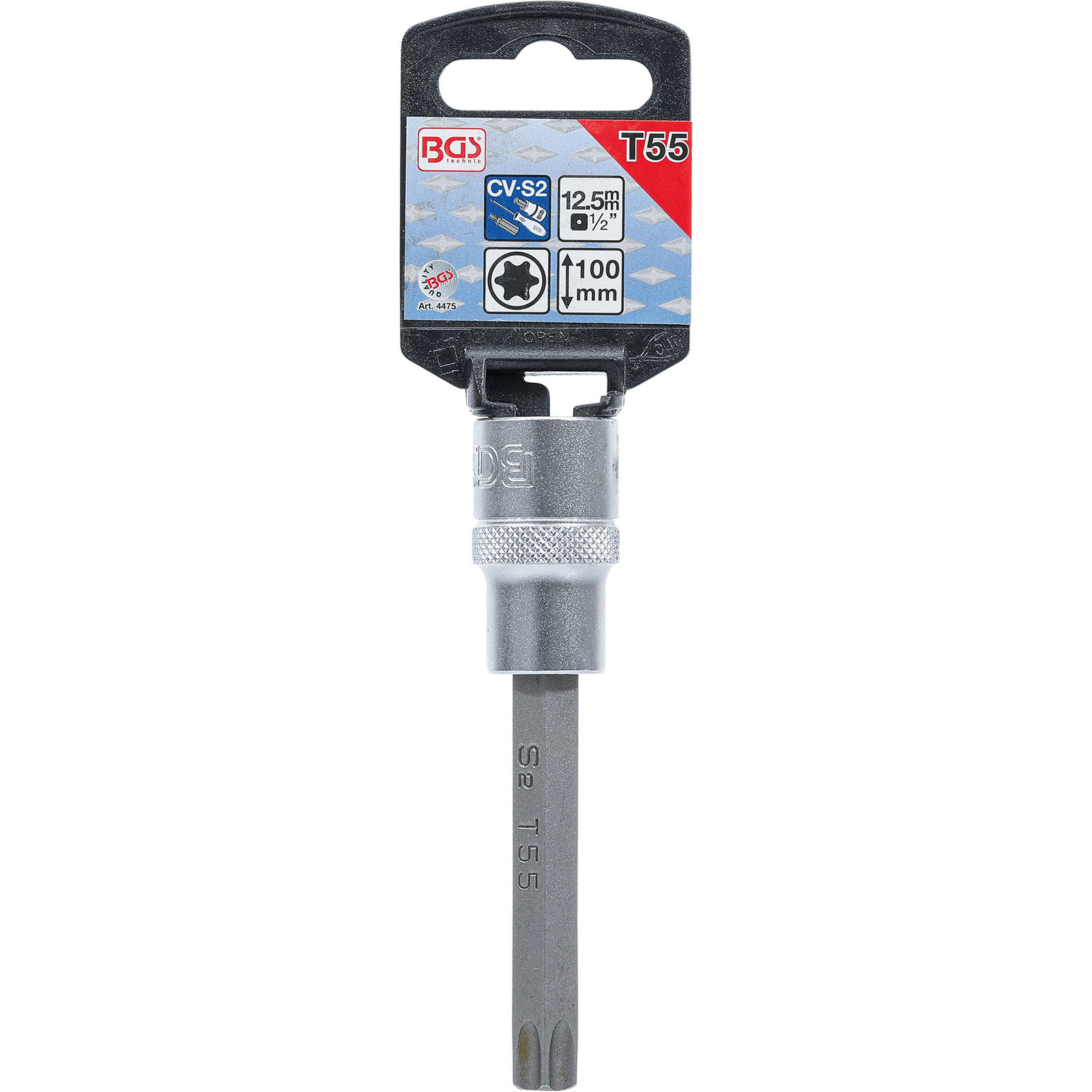 "BGS Bit-Einsatz Länge 100 mm Antrieb Innenvierkant 12,5 mm (1/2") T-Profil (für Torx) T55 - 4475"