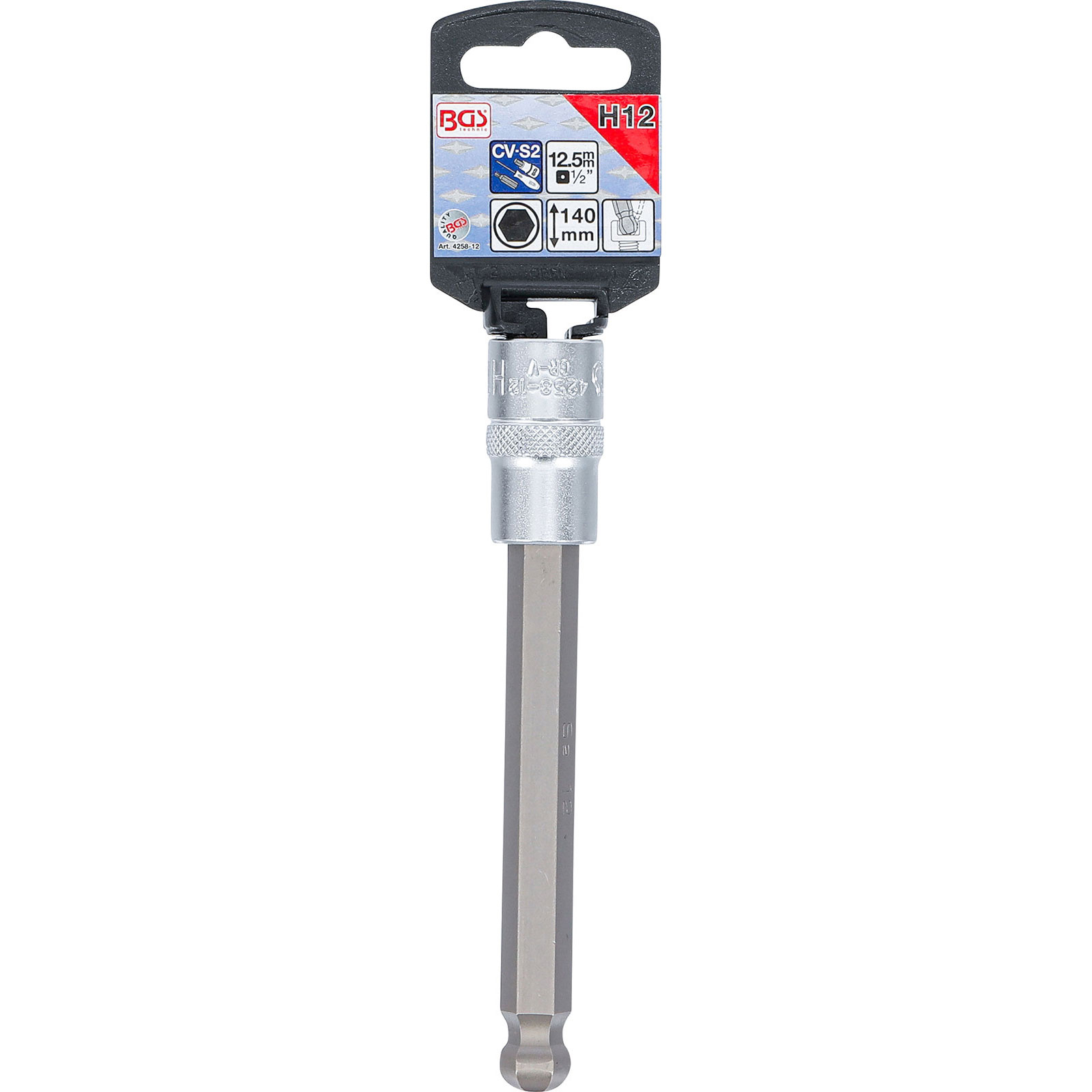 "BGS Bit-Einsatz Länge 140 mm Antrieb Innenvierkant 12,5 mm (1/2") Innensechskant mit Kugelkopf 12 mm - 4258-12"