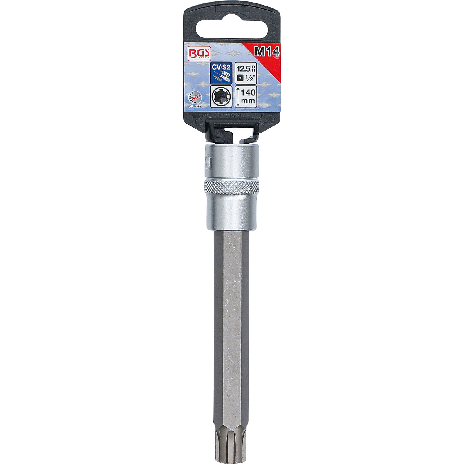 "BGS Bit-Einsatz Länge 140 mm Antrieb Innenvierkant 12,5 mm (1/2") Keil-Profil (für RIBE) M14 - 4178"