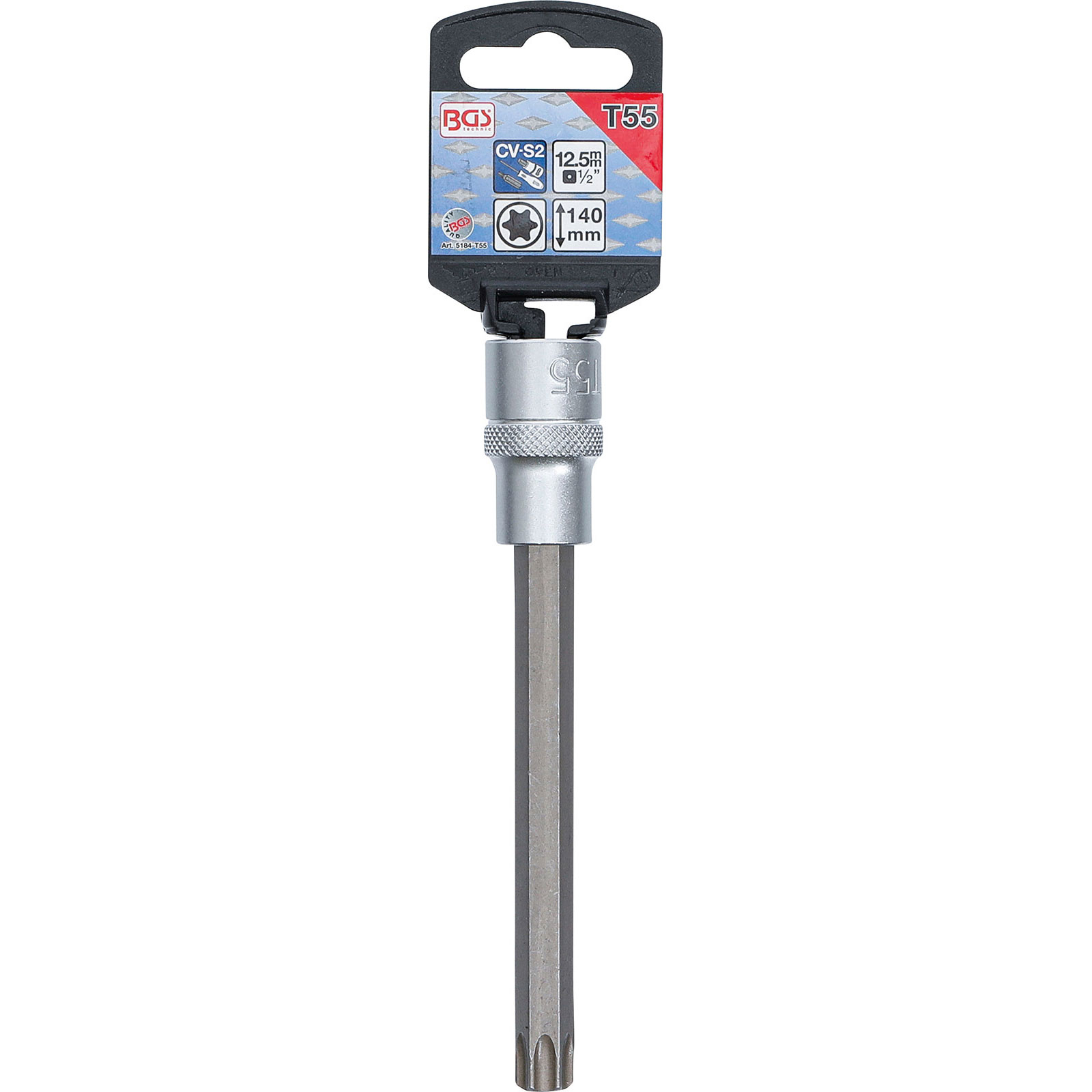 "BGS Bit-Einsatz Länge 140 mm Antrieb Innenvierkant 12,5 mm (1/2") T-Profil (für Torx) T55 - 5184-T55"