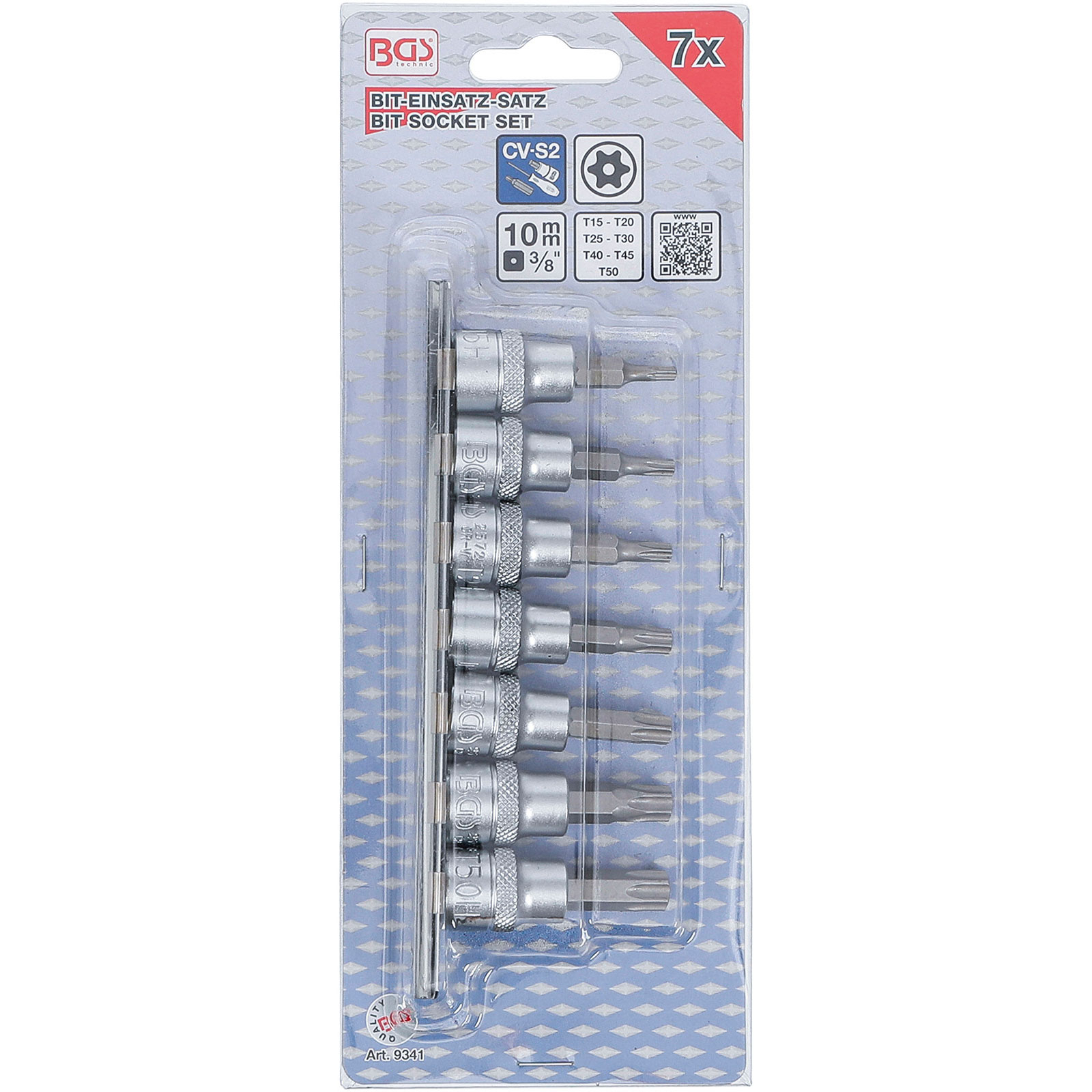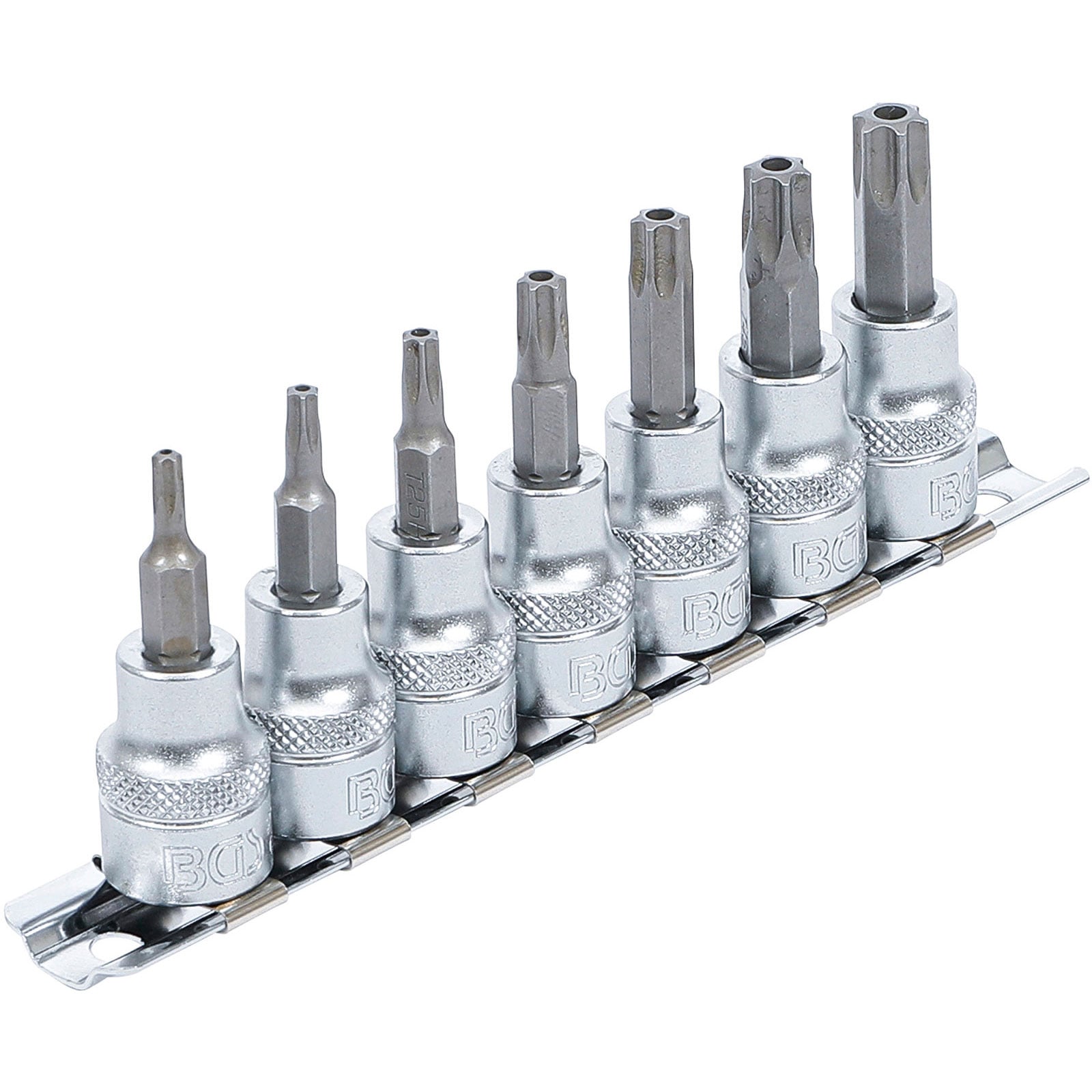 "BGS Bit-Einsatz-Satz Antrieb Innenvierkant 10 mm (3/8") T-Profil (für Torx) mit Bohrung T15 - T50 7tlg. - 9341"