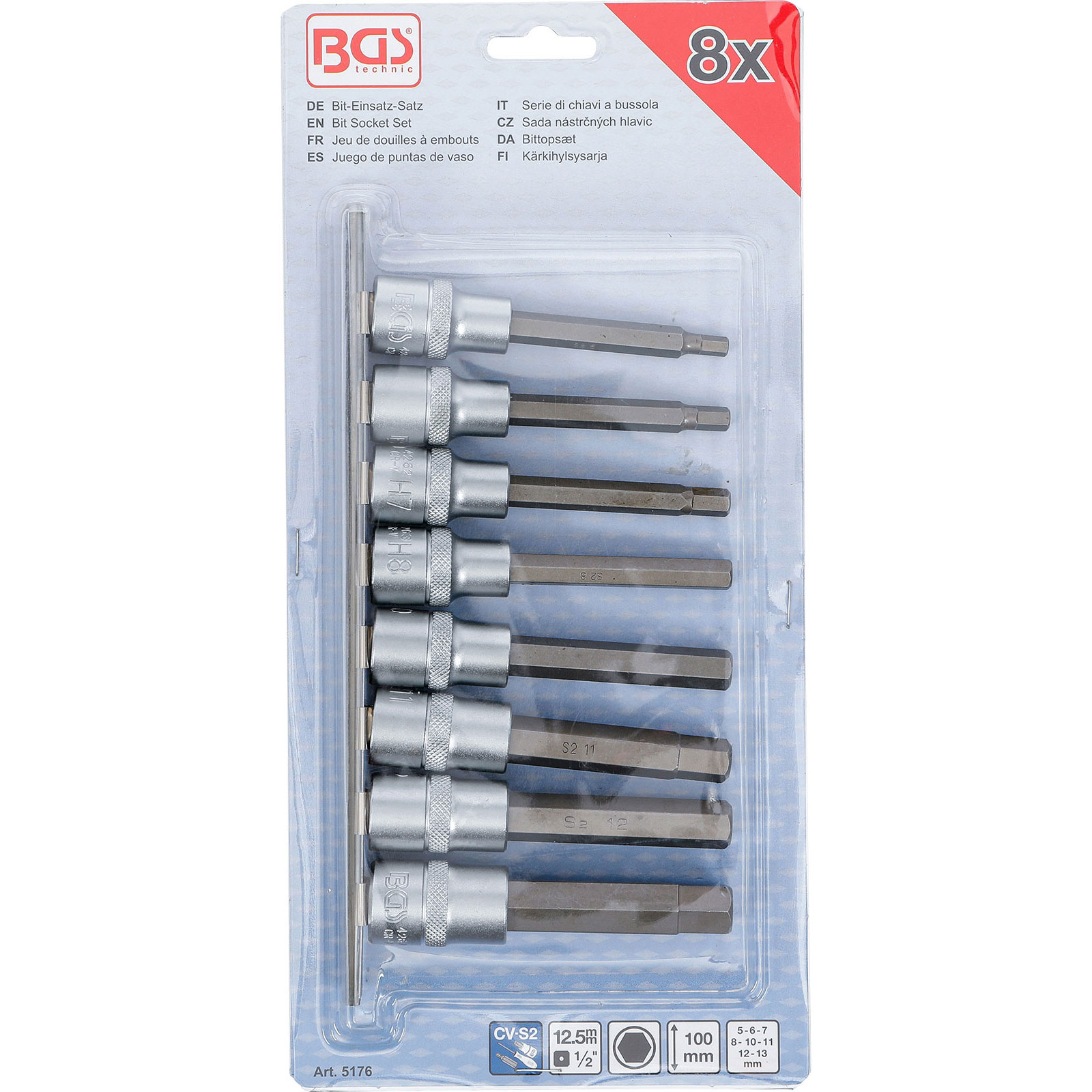 "BGS Bit-Einsatz-Satz Antrieb Innenvierkant 12,5 mm (1/2") Innensechskant 5 - 13 mm 8tlg. - 5176"