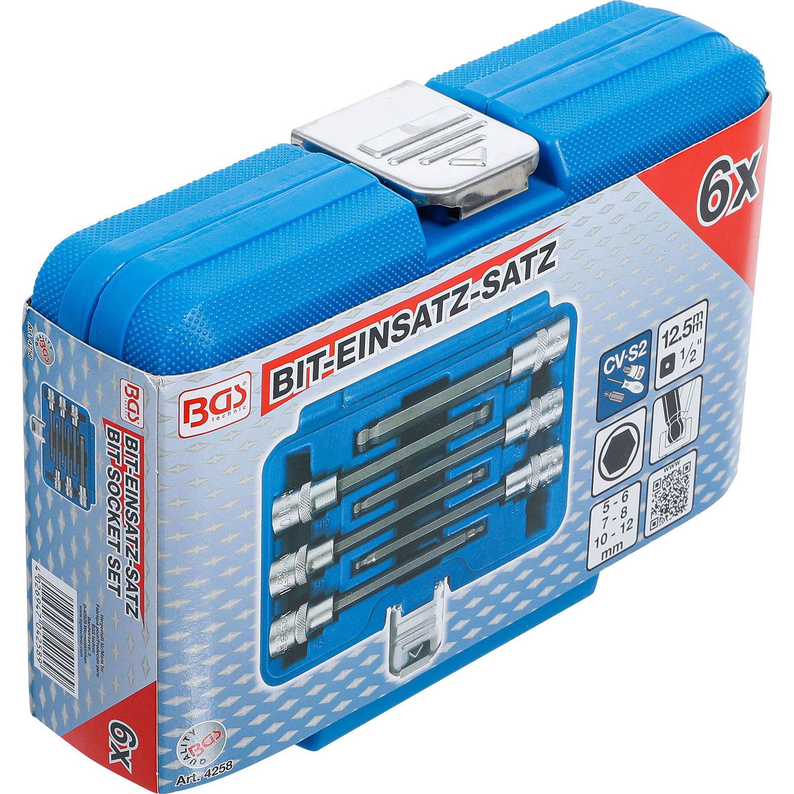 "BGS Bit-Einsatz-Satz Antrieb Innenvierkant 12,5 mm (1/2") Innensechskant mit Kugelkopf 5 - 12 mm 6tlg. - 4258"