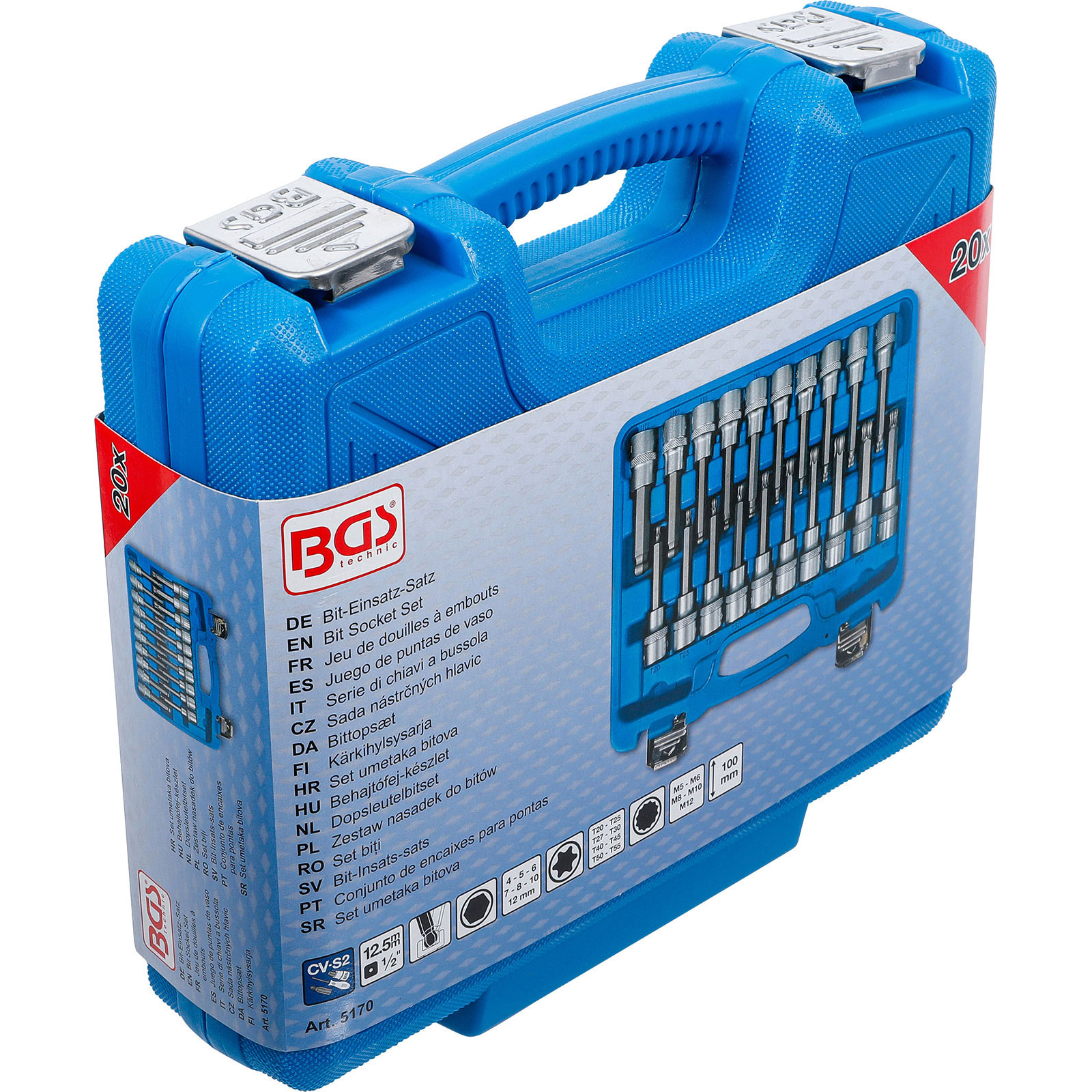 "BGS Bit-Einsatz-Satz Antrieb Innenvierkant 12,5 mm (1/2") Innensechskant, T-Profil (für Torx), Innenvielzahn (für XZN) mit Kugelkopf 20tlg. - 5170"