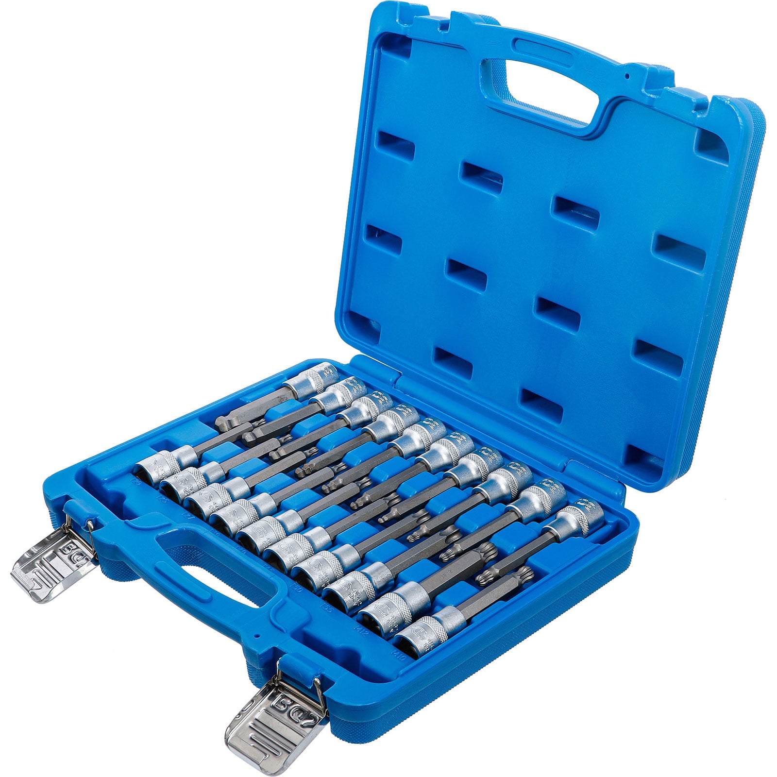 - 1x BGS Bit-Einsatz-Satz Antrieb Innenvierkant 12,5 mm (1/2") Innensechskant, T-Profil (für Torx), Innenvielzahn (für XZN) mit Kugelkopf 20tlg.