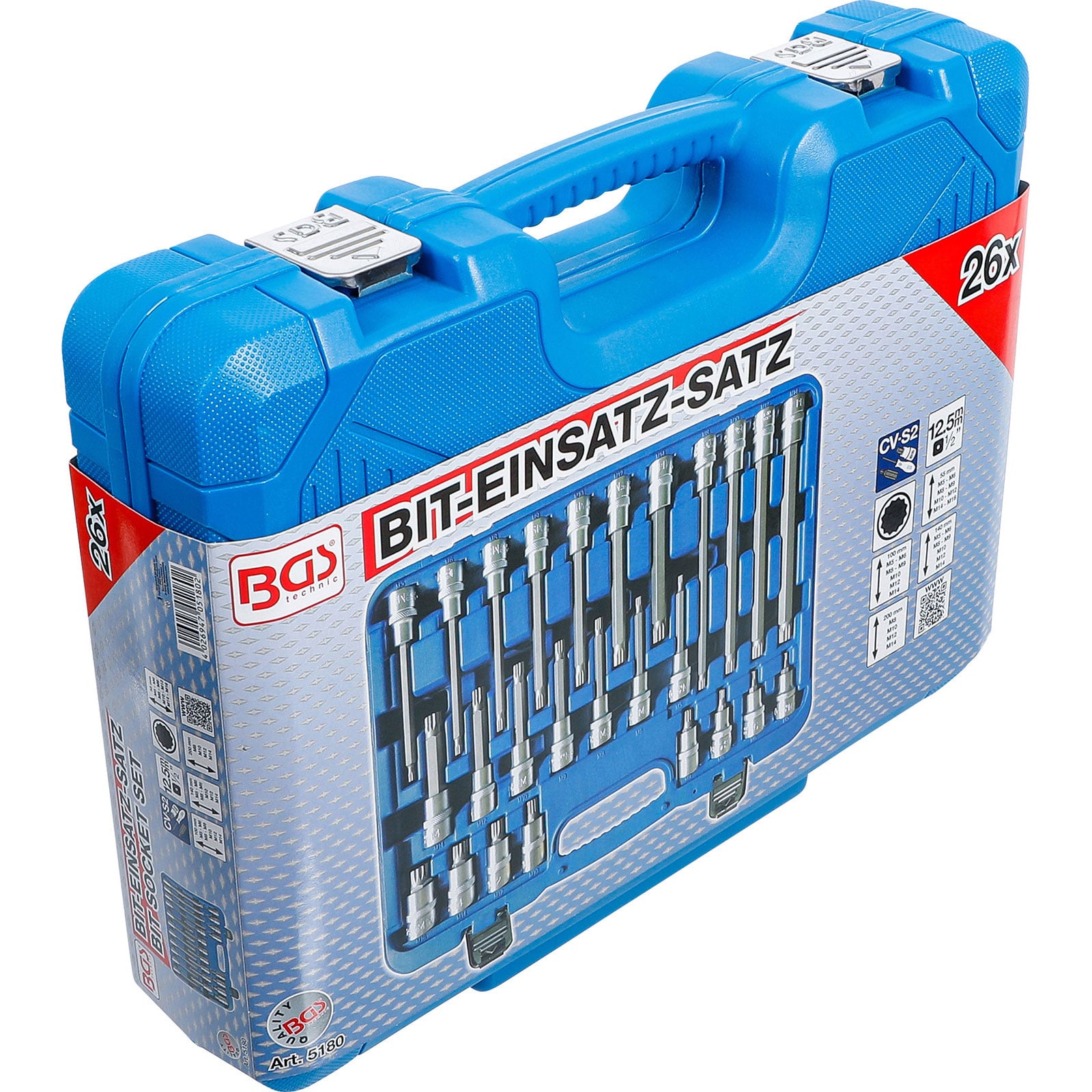 "BGS Bit-Einsatz-Satz Antrieb Innenvierkant 12,5 mm (1/2") Innenvielzahn (für XZN) 26tlg. - 5180"