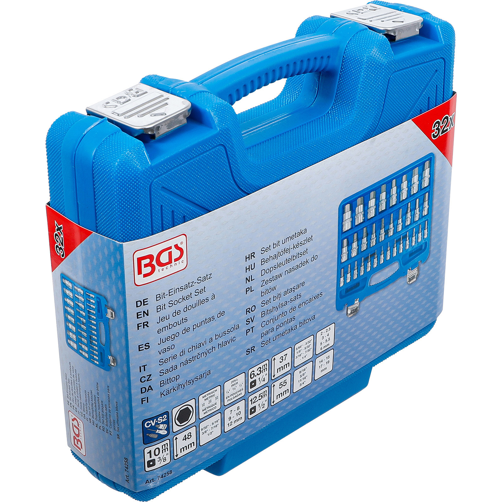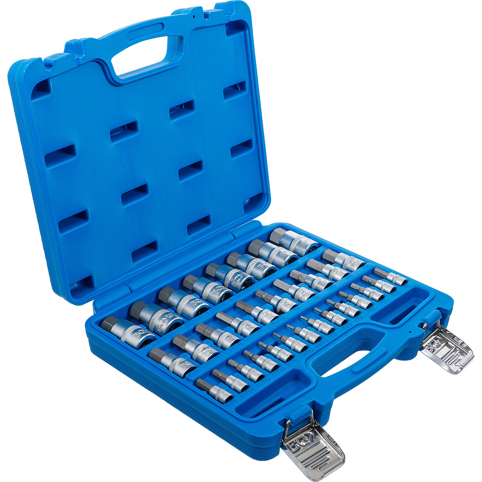 "BGS Bit-Einsatz-Satz Antrieb Innenvierkant 6,3 mm (1/4") / 10 mm (3/8") / 12,5 mm (1/2") Innensechskant 2 - 19 mm / 1/4 - 9/16" Metrisch und Zollgrößen 32tlg. - 74258"