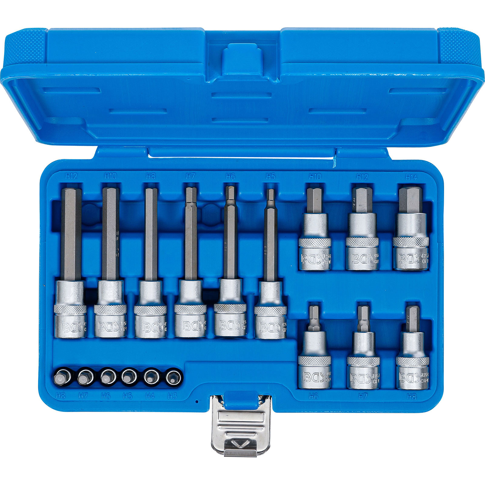 - 1x BGS Bit-Einsatz-Satz Antrieb Innenvierkant 6,3 mm (1/4") / 12,5 mm (1/2") Innensechskant 18tlg.