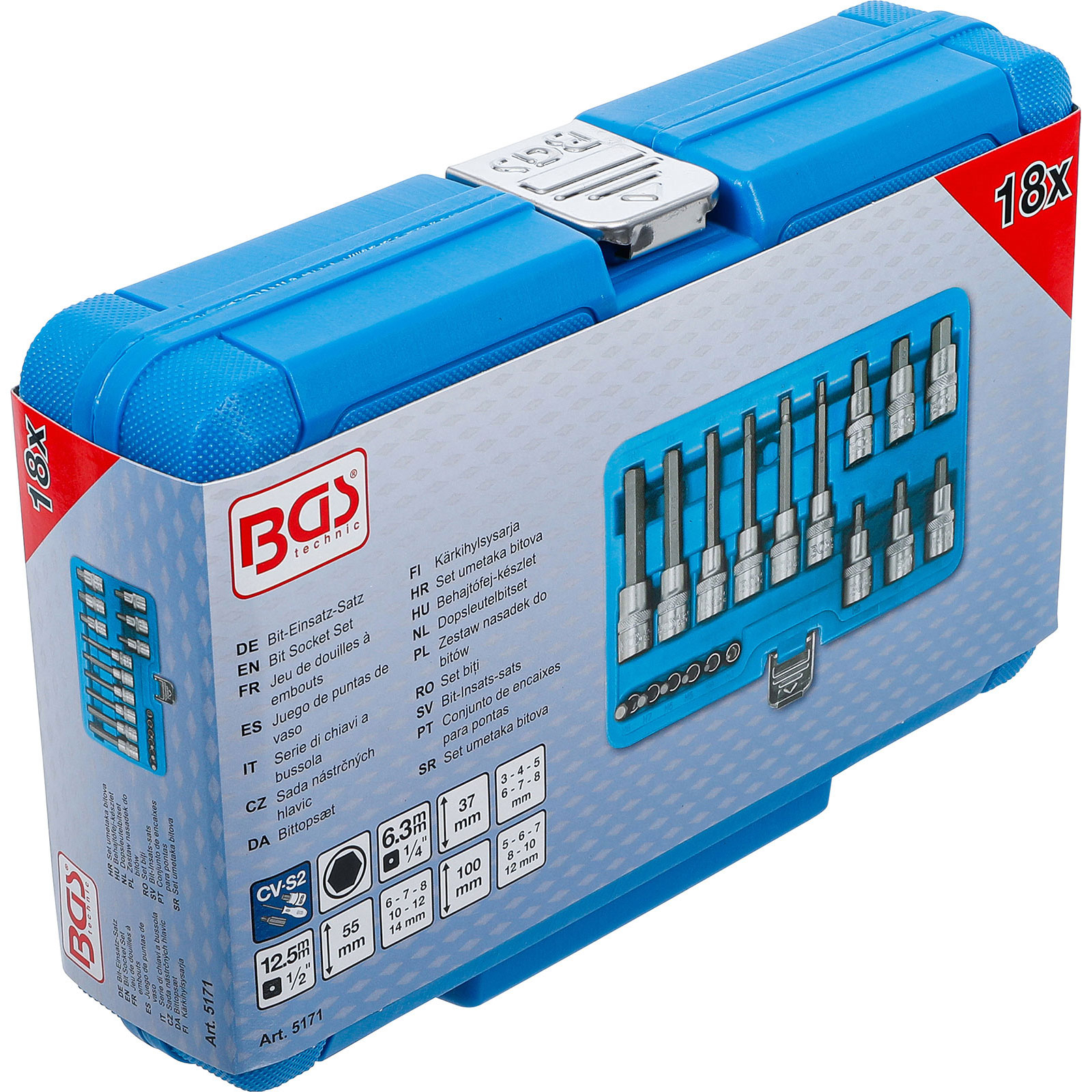 "BGS Bit-Einsatz-Satz Antrieb Innenvierkant 6,3 mm (1/4") / 12,5 mm (1/2") Innensechskant 18tlg. - 5171"