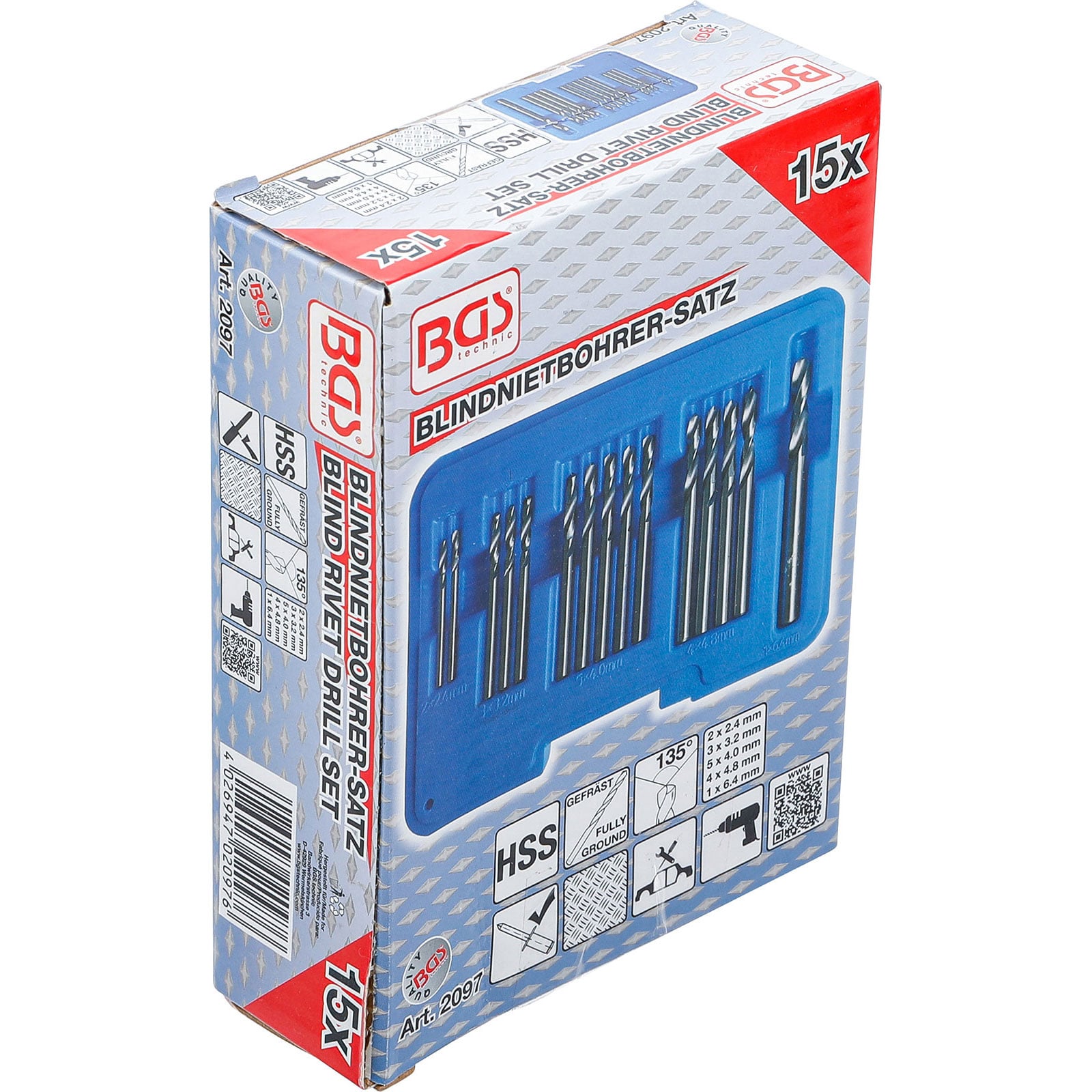 "BGS Blindnietbohrer-Satz HSS 2,4 - 6,4 mm 15tlg. - 2097"