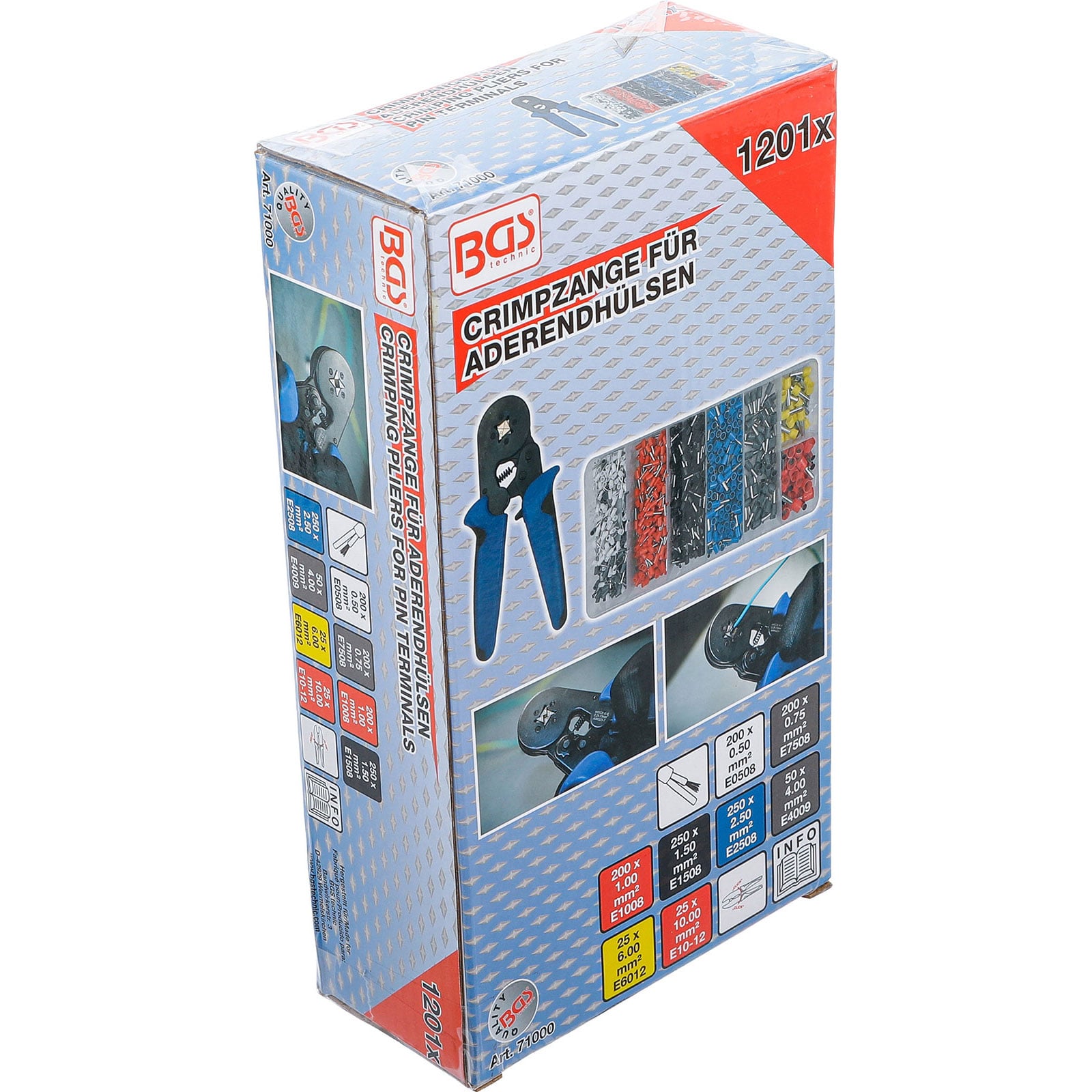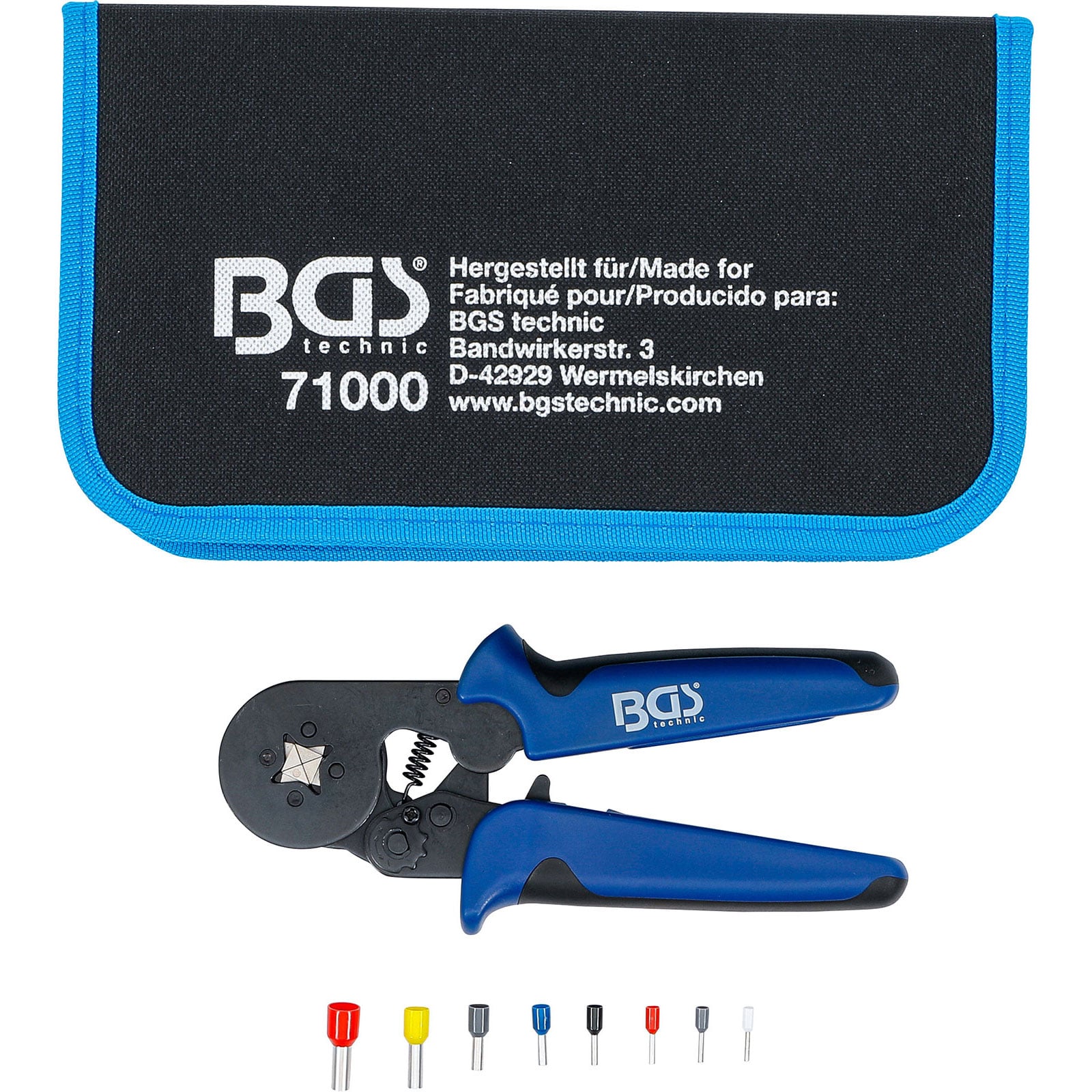 "BGS Crimpzange für Aderendhülsen 0,25 - 10 mm² mit Aderendhülsen-Sortiment 0,5 - 10 mm² - 71000"