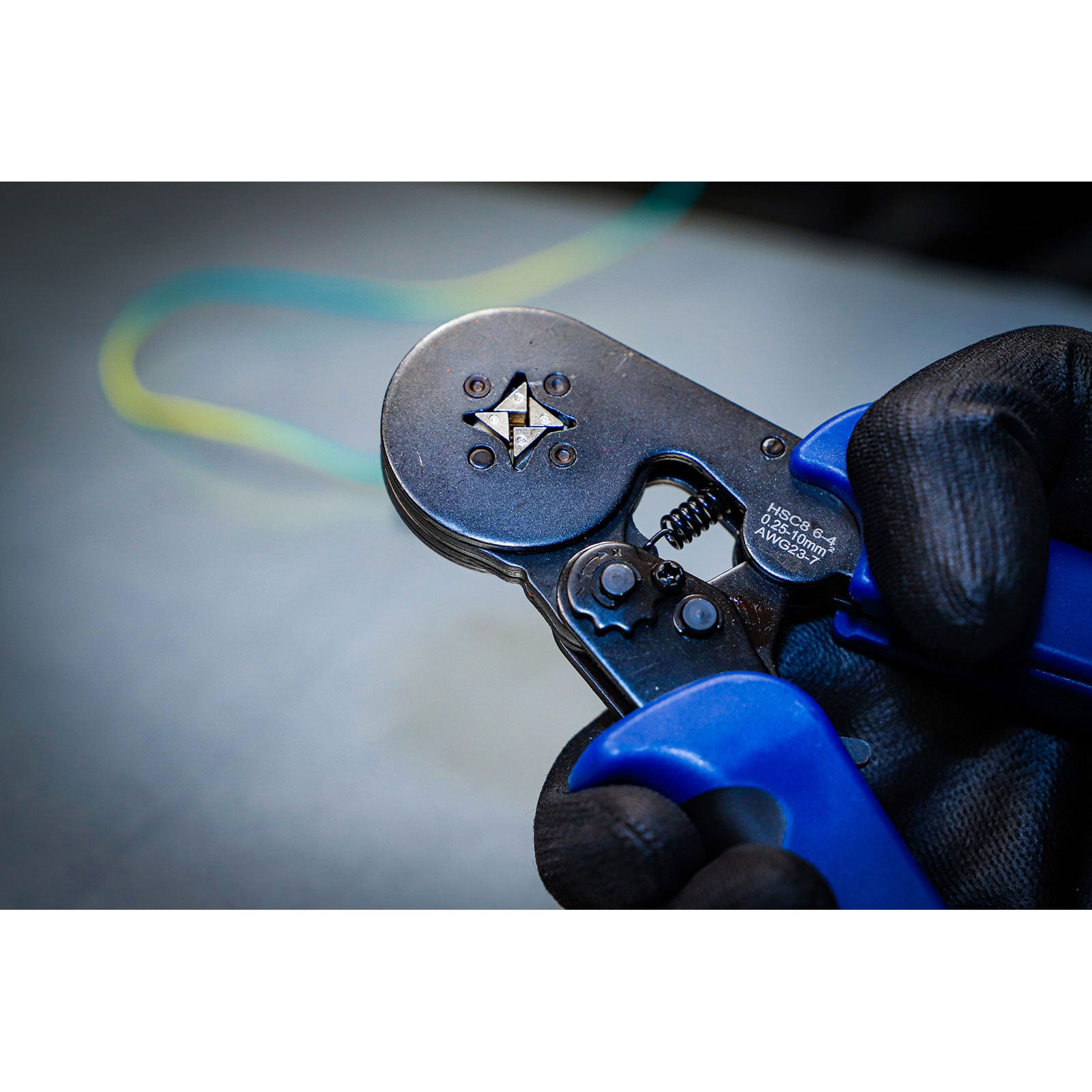 - zum sauberen und zuverlässigen Pressen von Aderendhülsen in den Größen 0,25 mm² bis 10 mm²