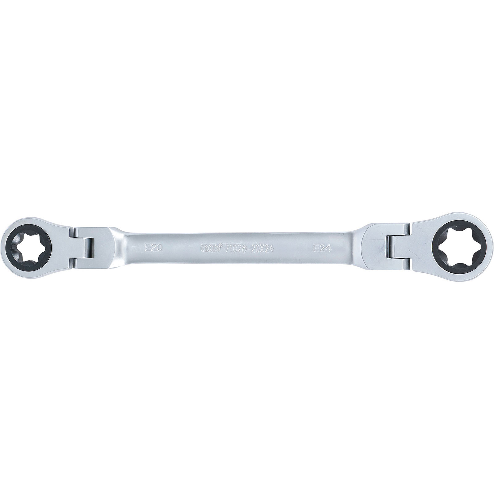 "BGS Doppel-Ratschen-Ringschlüssel abwinkelbar mit E-Profil Ringköpfen SW E20 x E24 - 71028-20X24"